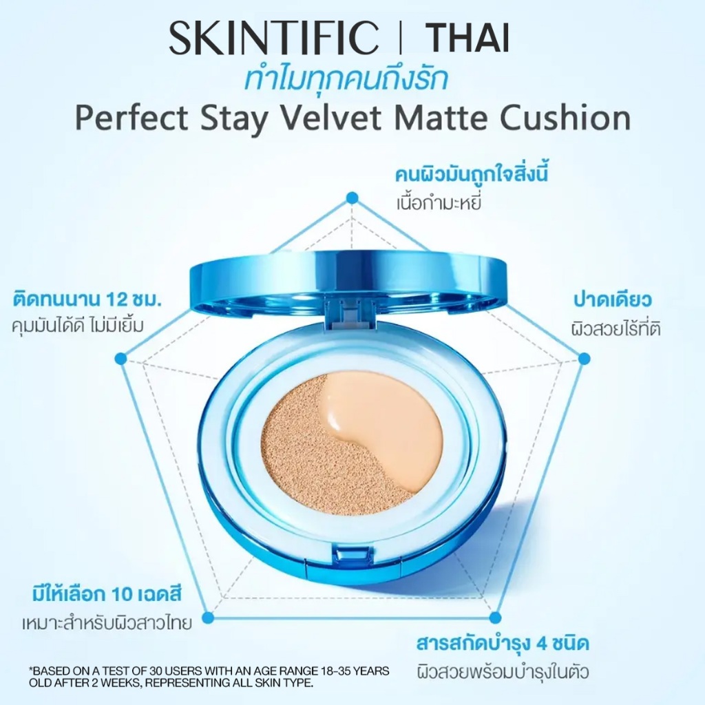 【ANNTONIA'S PICK】SKINTIFIC Perfect Stay Velvet Matte Cushion คูชชั่นตลับ สีฟ้า คุชชั่น ให้การปกปิด แมตต์ติ