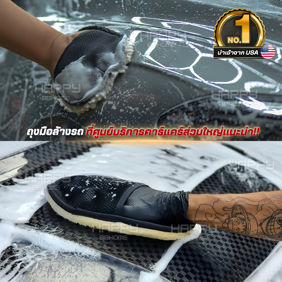 ถุงมือล้างรถขนแกะแท้100%(นำเข้าUSA)ขนนุ่มหนาพิเศษ ไม่เป็นขุย เช็ดเบาะ แว็กซ์รถยนต์ เช็ดรถ ผลิตภัณฑ์ดูแลรถ ฟองน้ำล้างรถ