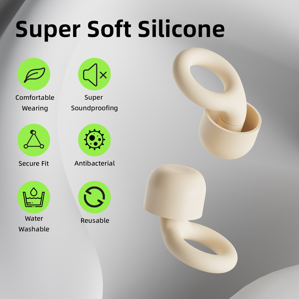 GOOJODOQ 24dB ที่อุดหูตัดเสียงรบกวนซิลิโคนนุ่มพิเศษ 4 ขนาด Secure Fit สําหรับการนอนหลับและการเดินทาง