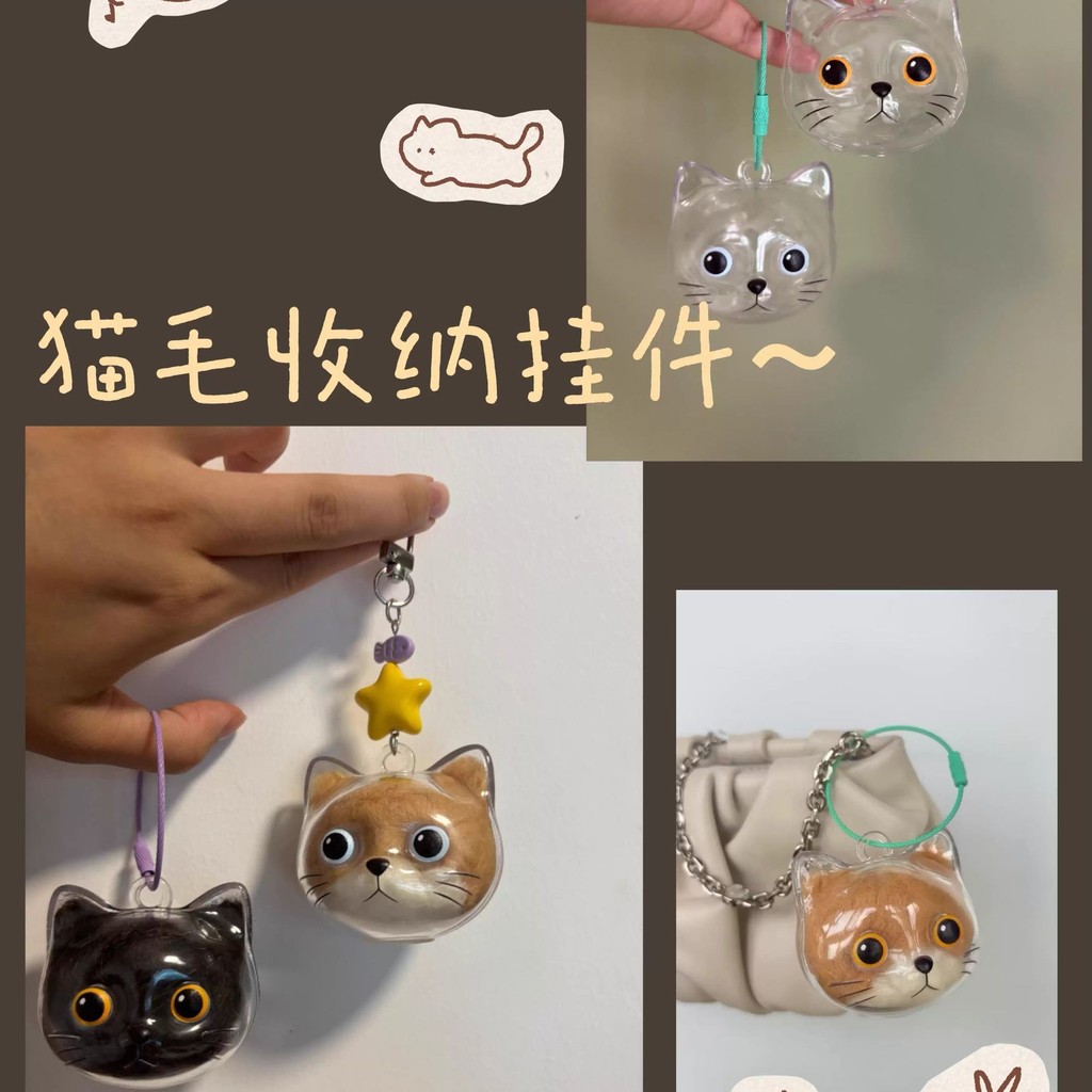 กล่องเก็บขนแมวใสสร้างสรรค์พวงกุญแจลูกแมวน่ารักลูกผมสัตว์เลี้ยงจี้อุปกรณ์สัตว์เลี้ยงมีสไตล์