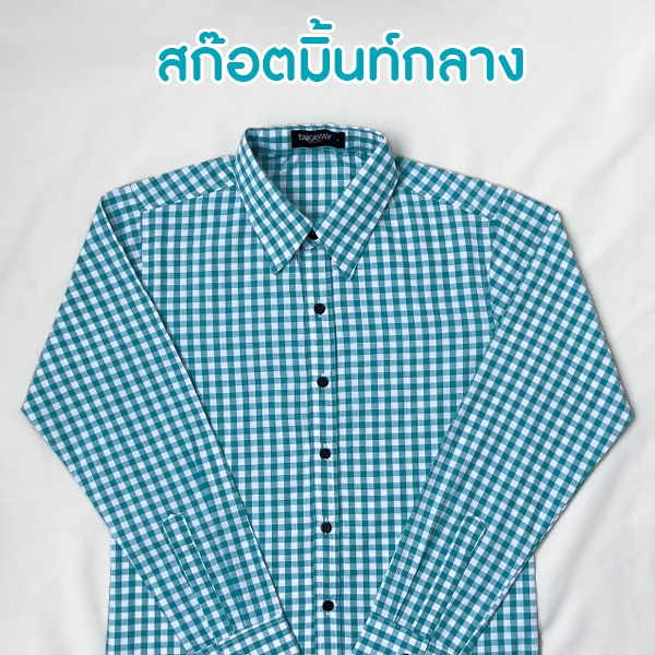 takayay brand เสื้อเชิ้ต สก๊อตมิ้นท์กลาง เสื้อเชิ้ตสก๊อต ผ้าคอตตอนทวิล เสื้อเชิ้ตสก๊อตสีมิ้นท์