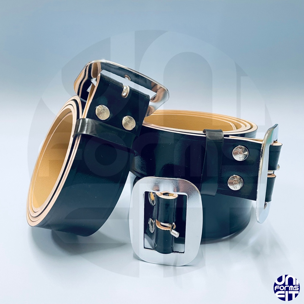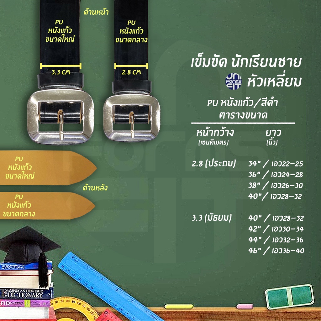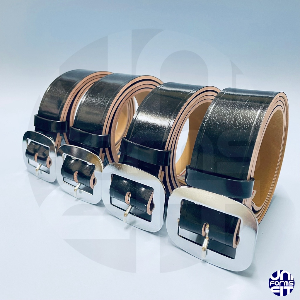 เข็มขัดนักเรียนชาย หัวเหลี่ยม สีดำ หนังแก้ว ประถม มัธยม