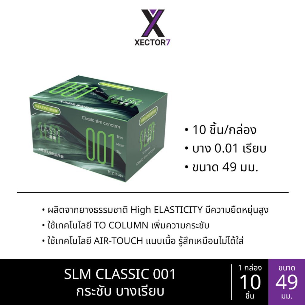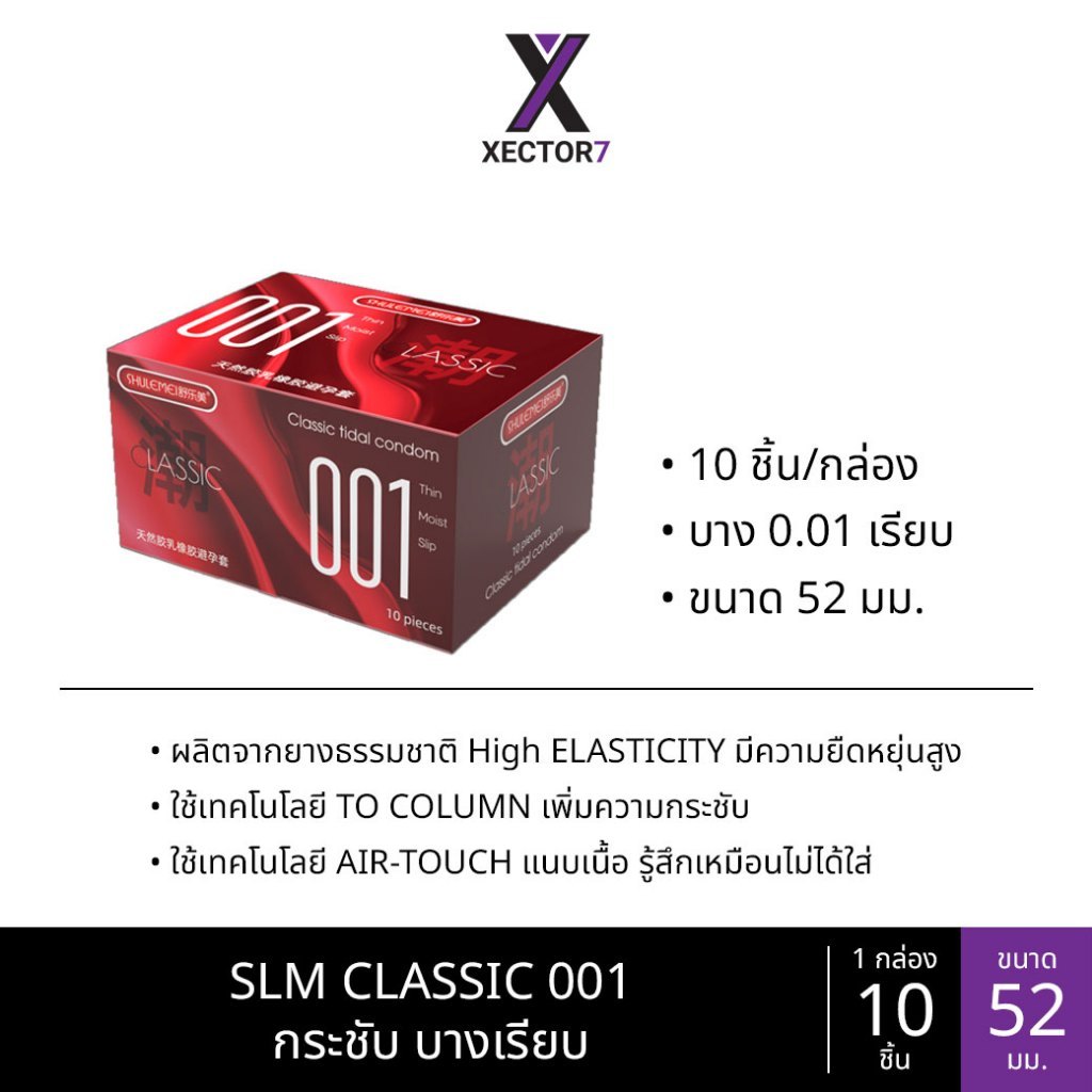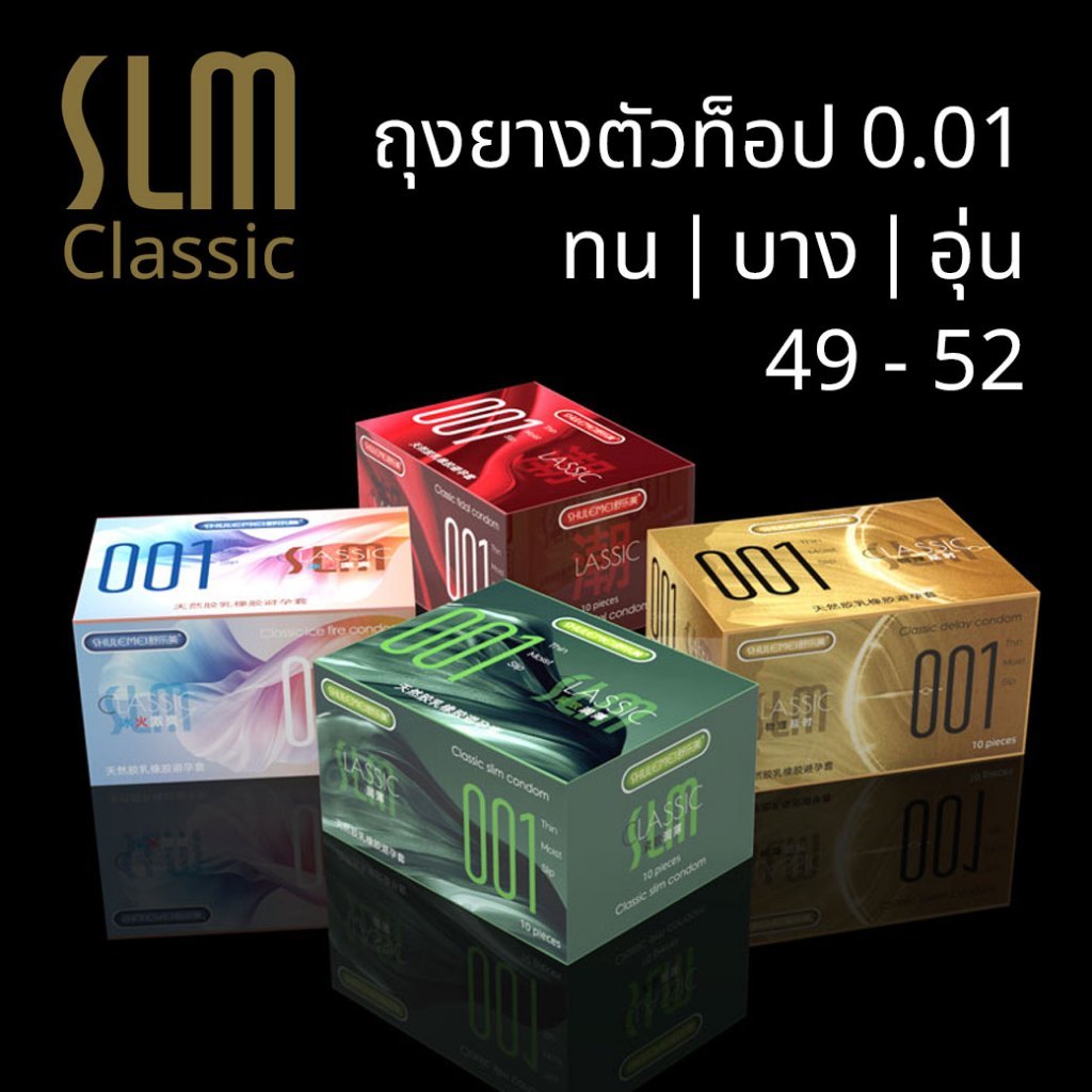ถุงยางบาง SLM Classic 001 ขนาด49-52 บางเรียบ ทนทาน อุ่นเย็น (10ชิ้น/กล่อง)