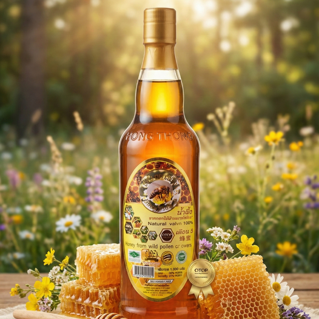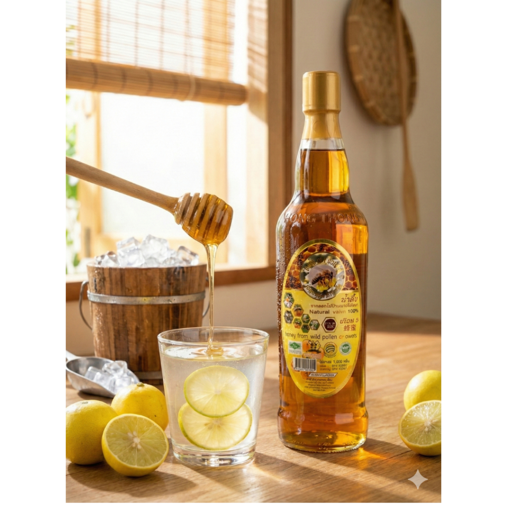 น้ำผึ้งเดือน 5 แท้ 100% ฮันนี่มูน 1000มล. ของดี OTOP การันตีรางวัลและความอร่อย สะอาด ปลอดภัย (มีฮาลาล)