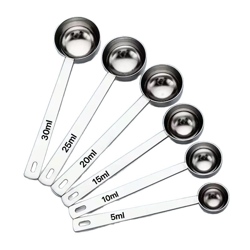 OUKEAI 304 ช้อนตวงสแตนเลส 5ml ~ 30ml ครัวเบเกอรี่ช้อนปรุงรสกาแฟนมถั่วเหลืองผงช้อนตวง