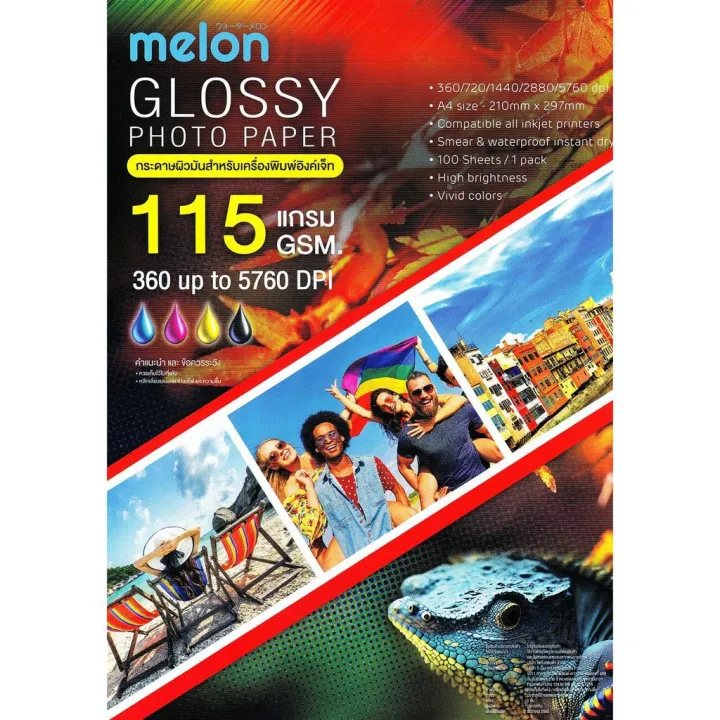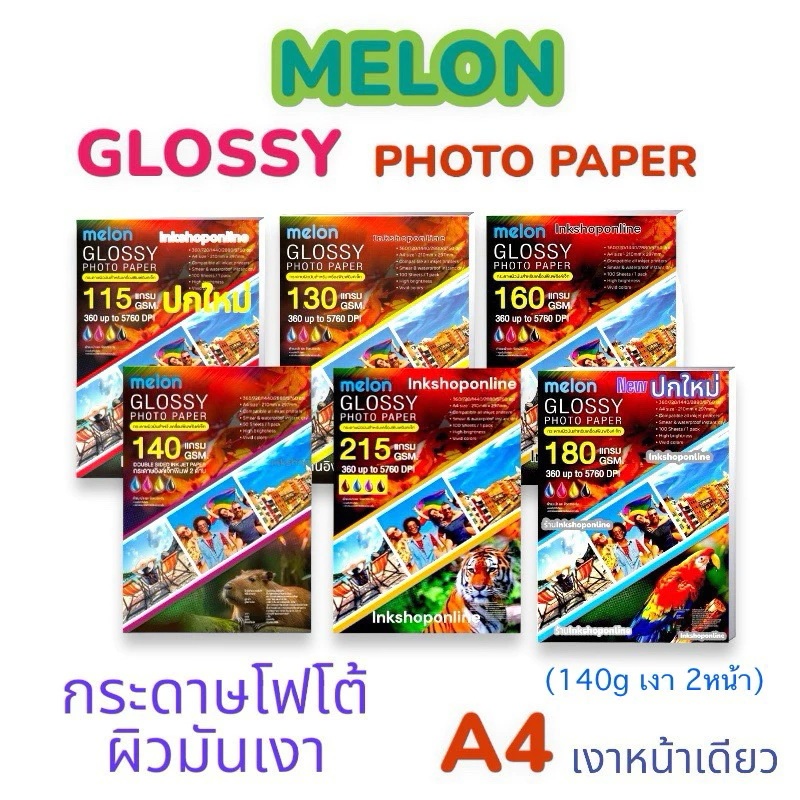 🔥ขายดีมาก ส่งไว🔥MELON GLOSSY PHOTO PAPER (100 แผ่น) กระดาษโฟโต้ ผิวมันเงา สำหรับอิงค์เจ็ท INKJET A4