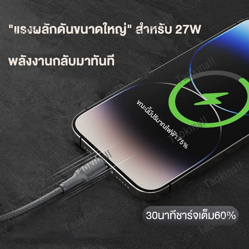 Taokinall PD 27W สาย USB สําหรับสาย Type- C 65W Fast Charger สายชาร์จ สําหรับ สายชาร์จ USB Data Line IP7-14Pro/MAX