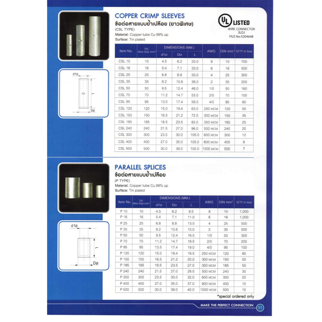 CS ( CSL ) 95,120,150,240 ข้อต่อสายแบบย้ำเปลือย ″T-LUG″