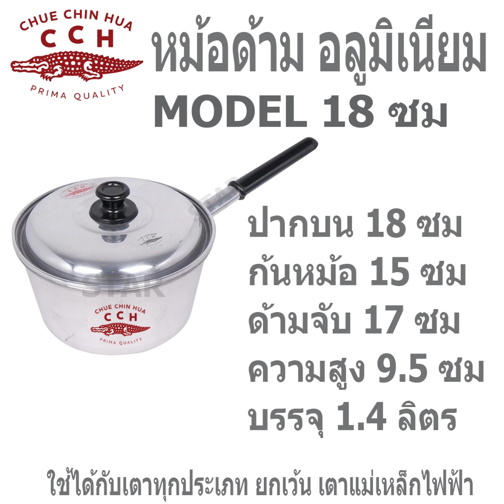 ตราจระเข้ หม้อด้าม หม้อโจ๊ก อลูมิเนียม หม้อต้ม ด้ามจับยาว มีฝาปิด คลุกยำ ลาบ