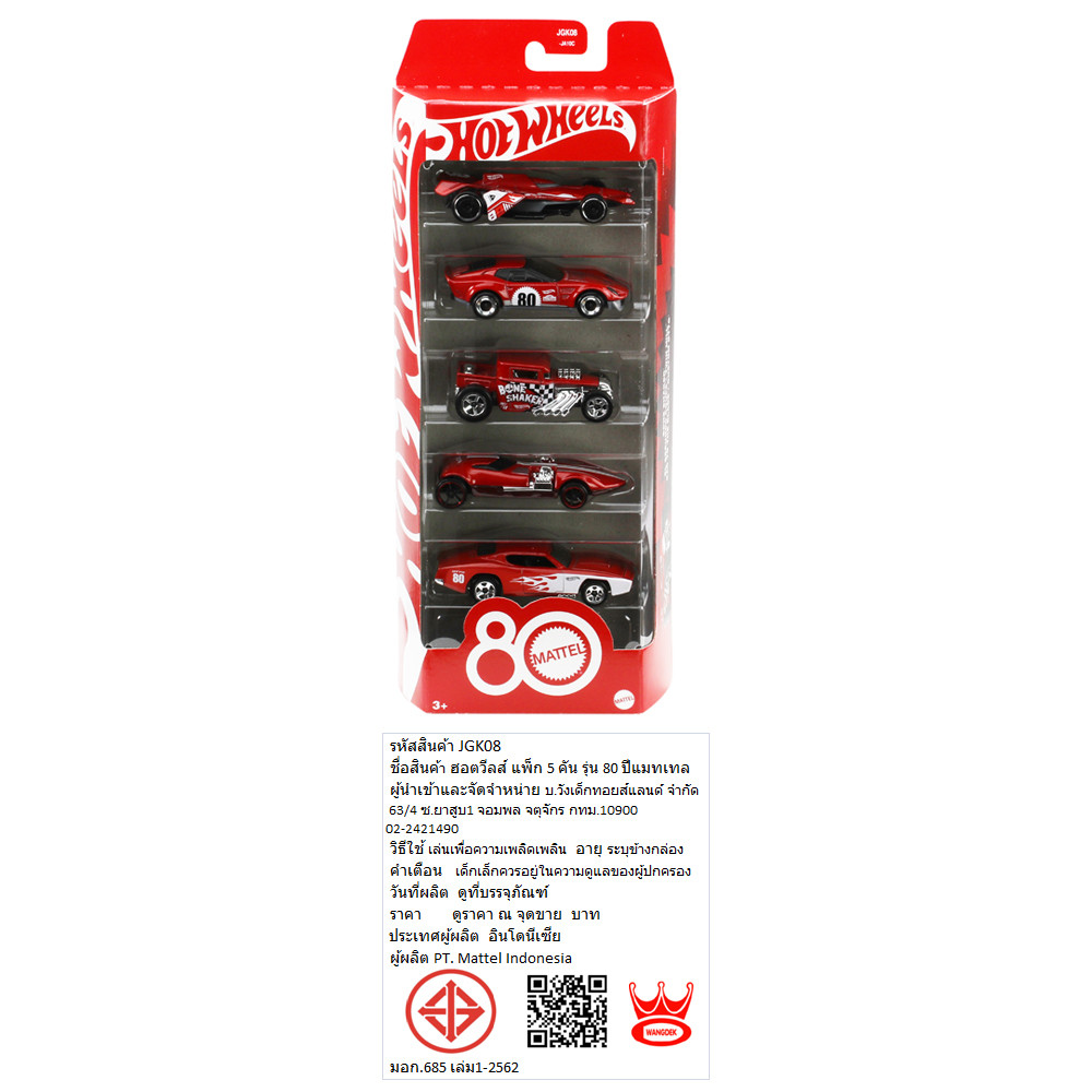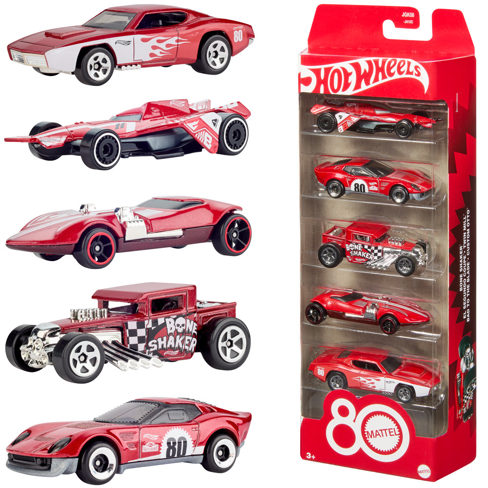 Hot Wheels Mattel 80Th 5-Pack Of 1:64 Scale รถฮอตวีล แพ็ค5คัน รุ่นฉลอง 80 ปี แมทเทล JGK08