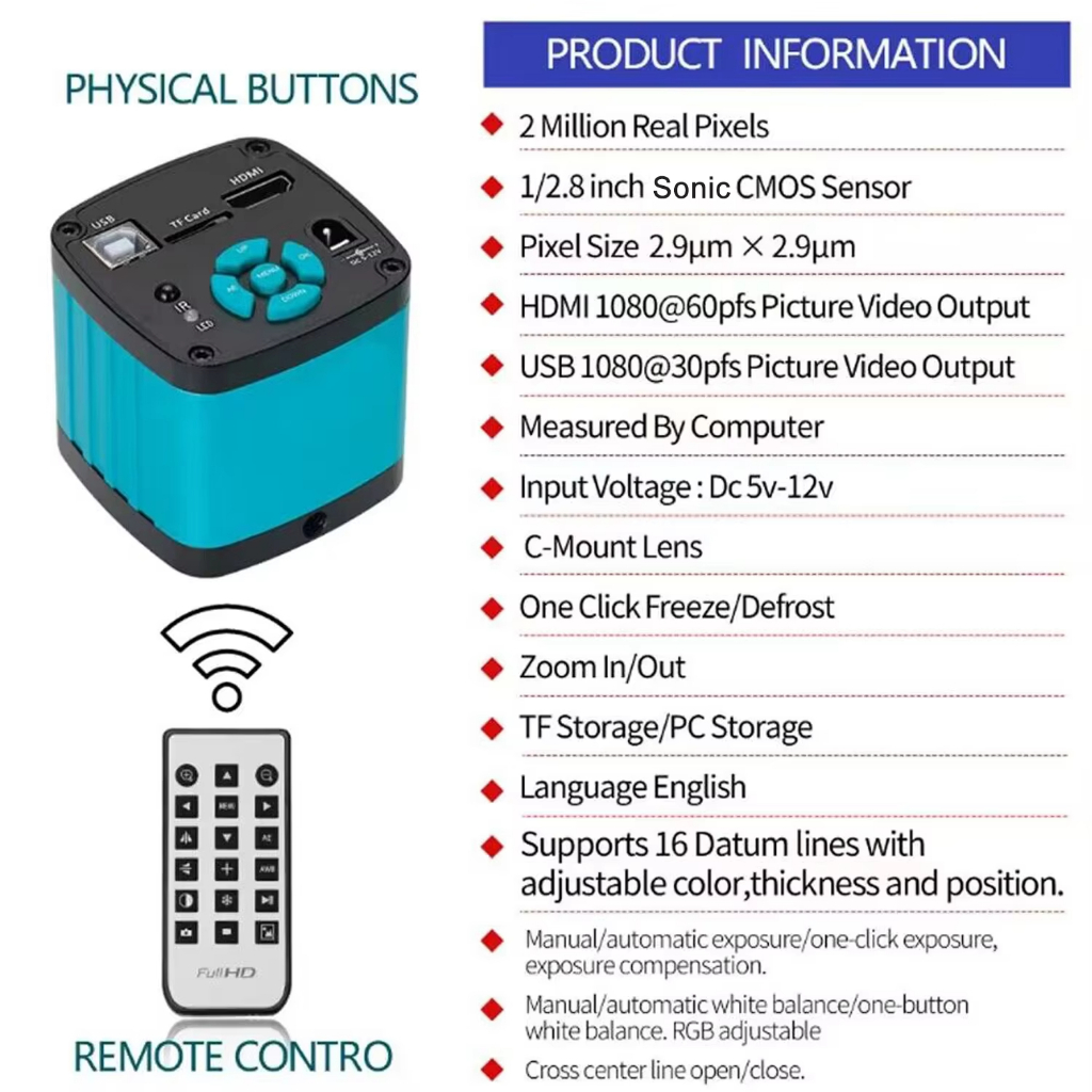 YIZHAN HD 4K SONY IMX327 กล้องกล้องจุลทรรศน์อิเล็กทรอนิกส์เซนเซอร์,เอาต์พุต HDMI USB,ซอฟต์แวร์,เลนส์เมาท์ C 1-150X,ระยะทางการทํางาน 100 ซม.