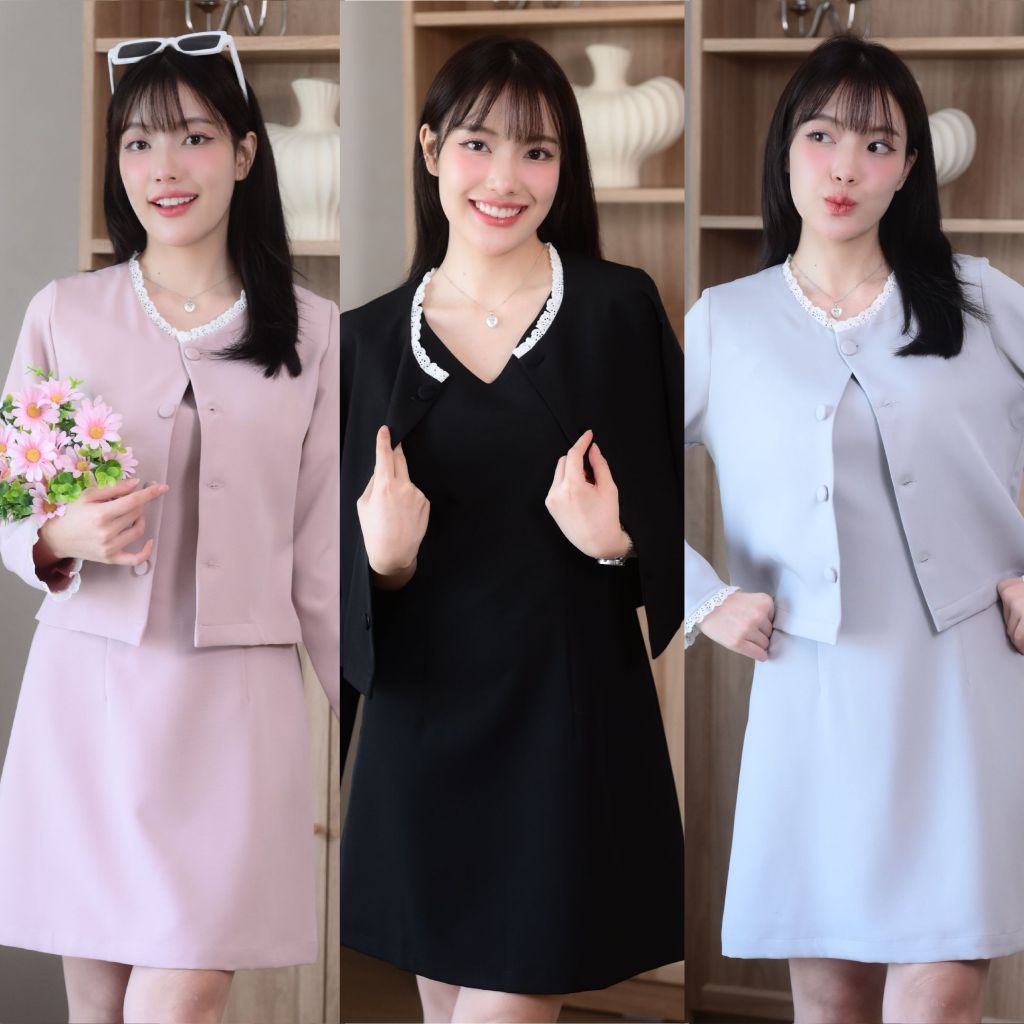 ชุดทำงานผู้หญิง ชุดเดรสสตรี สุภาพ เรียบร้อย สวย มีคุณภาพ รุ่น Riko