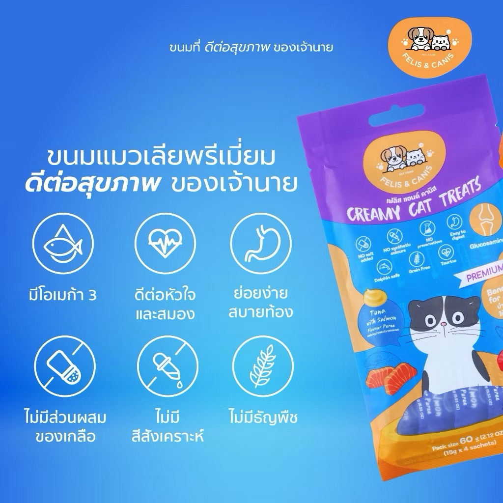 Felis & Canis ขนมแมวเลีย รสปลาทูน่าผสมปลาแซลมอน 15g. 1 แพ็ค/4 ซอง