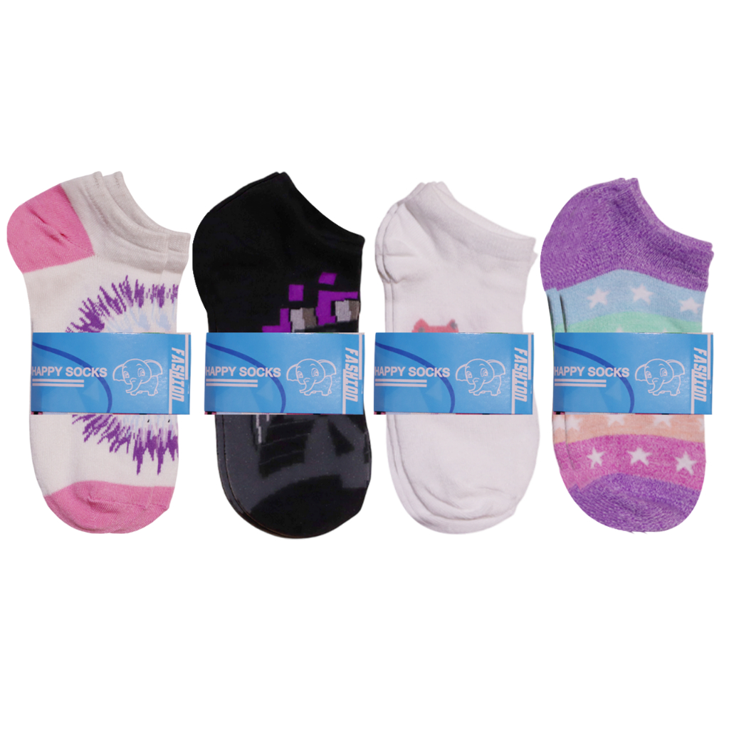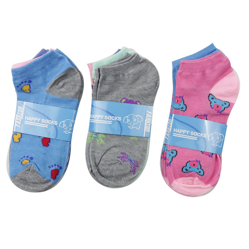 ถุงเท้าแฟชั่นข้อสั้น คละสี คละลาย สีสันสดใส ขนาดฟรีไซส์แพ็ค 12 คู่