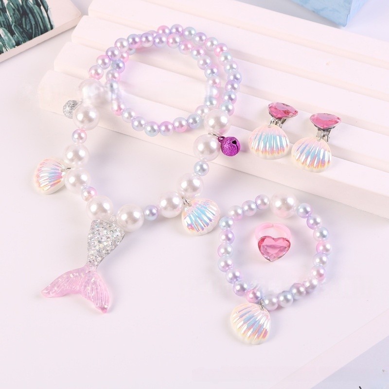 ชุดสร้อยสําหรับเด็ก 5pcs ของเล่นเด็ก เซตสร้อย คอไข่มุก สร้อยนางเงือก ดีไซน์เจ้าหญิงนางเงือก สีสันน่ารัก ไม่บาดผิวลูกน้อย