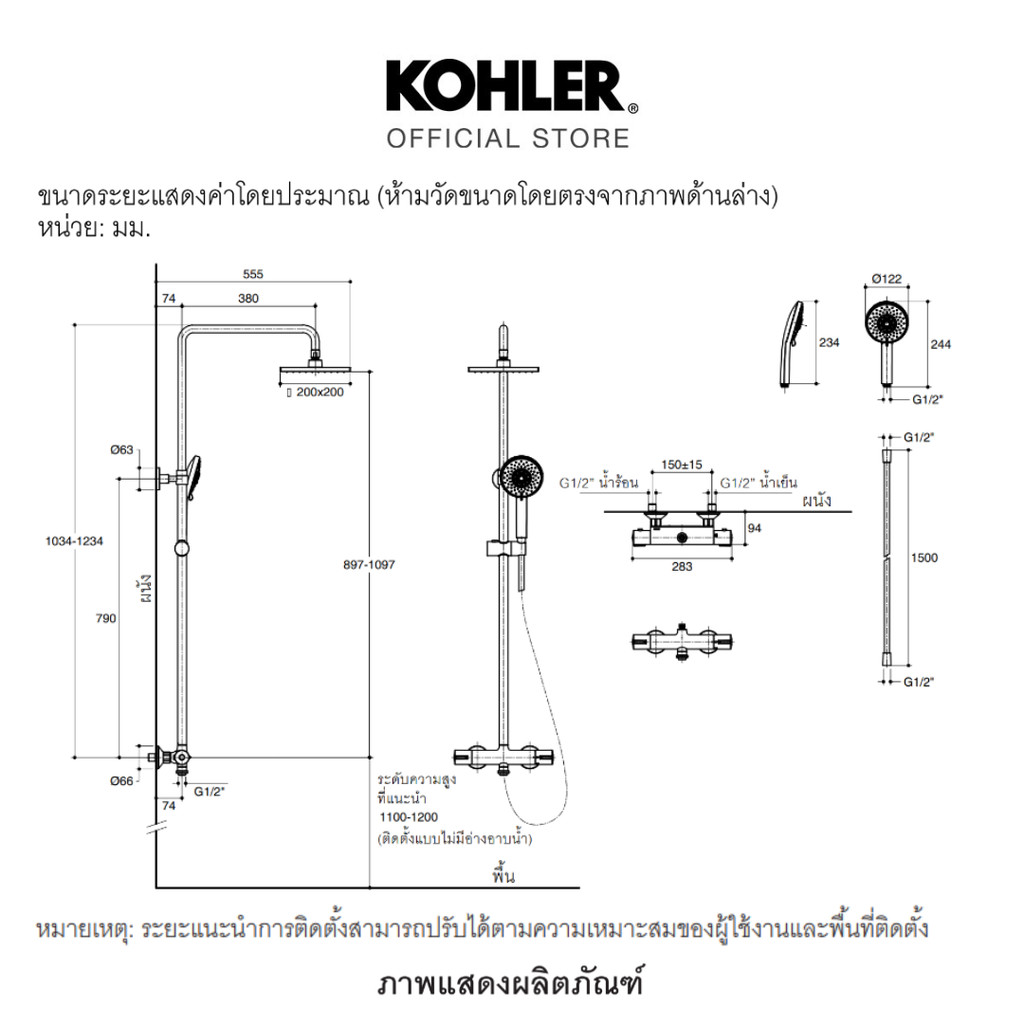 KOHLER (Special deal) Viteo 2 way thermostatic shower column-OL ก๊อกผสมยืน พร้อมชุดฝักบัวสายอ่อน K-26469T-9-CP