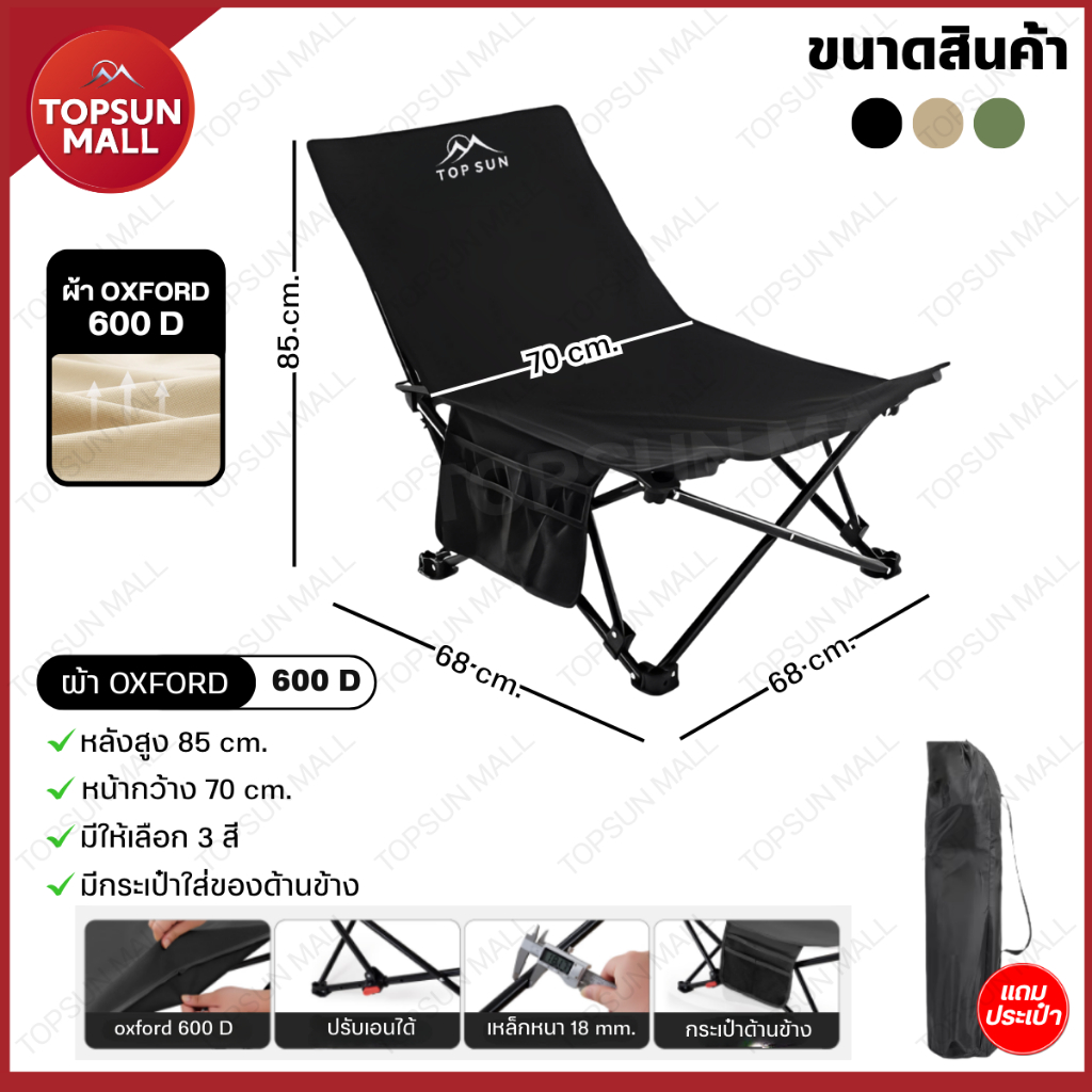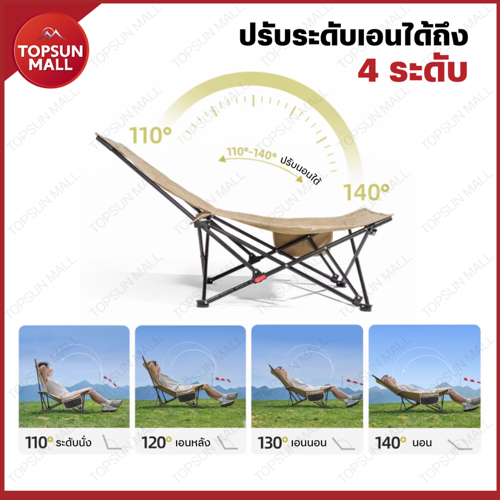 TopsunMall เก้าอี้แคมป์ปิ้ง ปรับนอน 4 ระดับ 160 องศา ผ้า2ชั้น เก้าอี้พับ แบบพกพา แถมถุงเก็บ เก้าอี้
