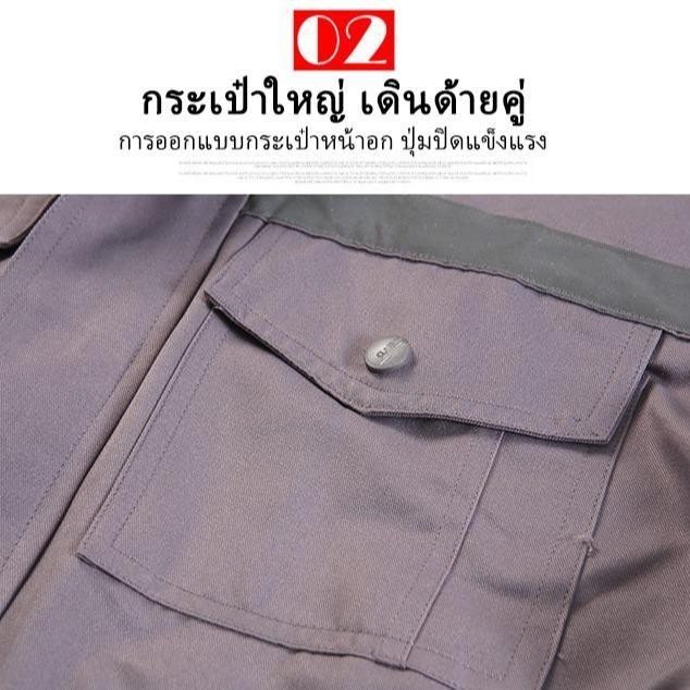 ชุดเครื่องแบบทำงาน เสื้อช็อป กางเกงทำงาน ใส่ได้ทั้งชายและหญิง ชุดช่างโรงงาน ชุดทำงานซ่อมรถยนต์ ช่างเชื่อม ชุดสะท้อนแสง