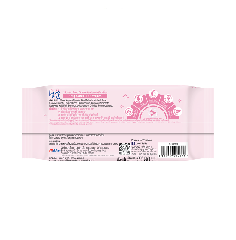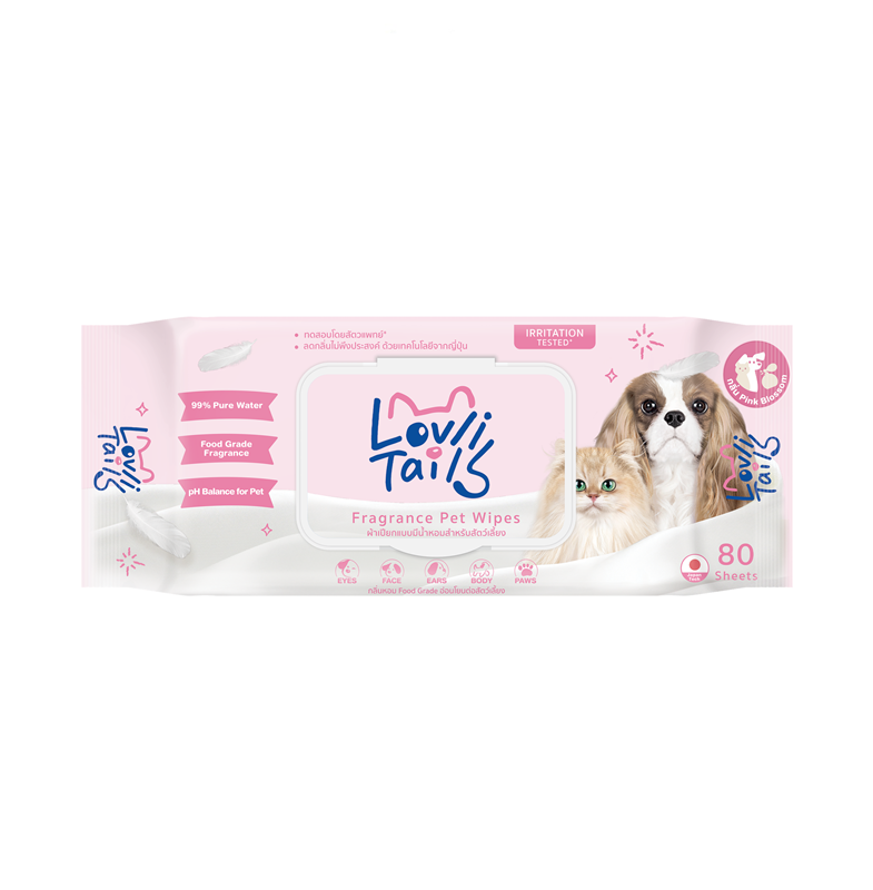 ทิชชู่เปียกสัตว์เลี้ยง สูตรอ่อนโยน เช็ดรอบดวงตาได้ ใช้ได้ทั้งแมวและหมา LovliTails เลิฟลี่เทล [1ห่อมี80แผ่น]
