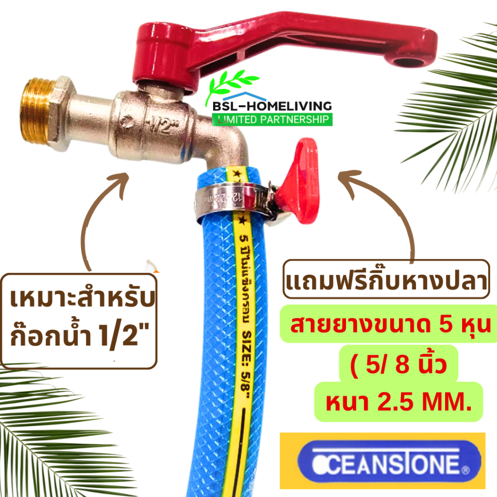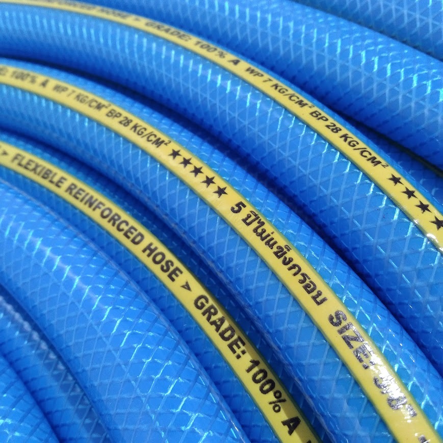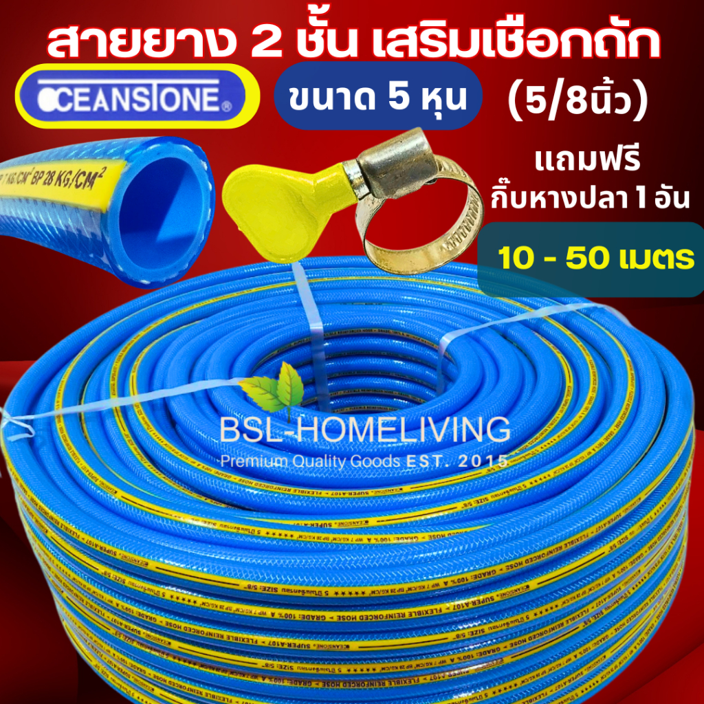 OCEANSTONE สายยางสีฟ้าเสริมเชือกถัก เกรด A ขนาด 5 หุน (5/8") แถมฟรี กิ๊บรัด 1 อัน (A107)