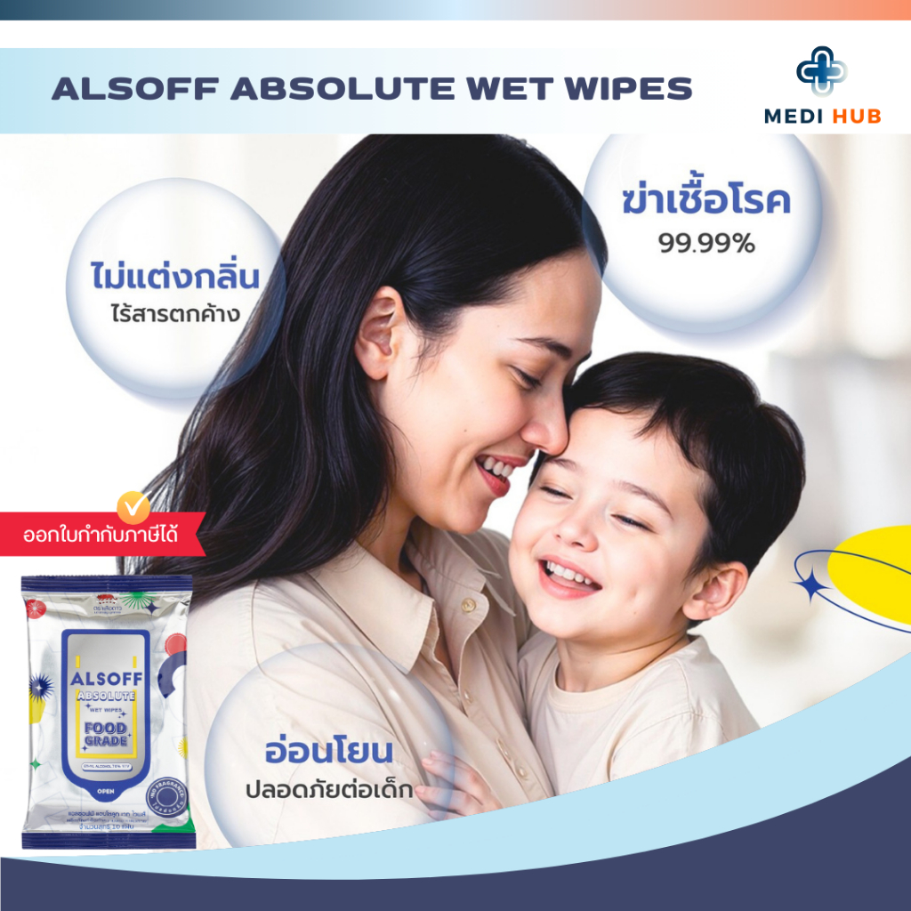 Alsoff ทิชชู่เปียกแอลกอฮอลล์ 70% (จำนวน 1 ห่อ) แอลซอฟต์ Alcohol