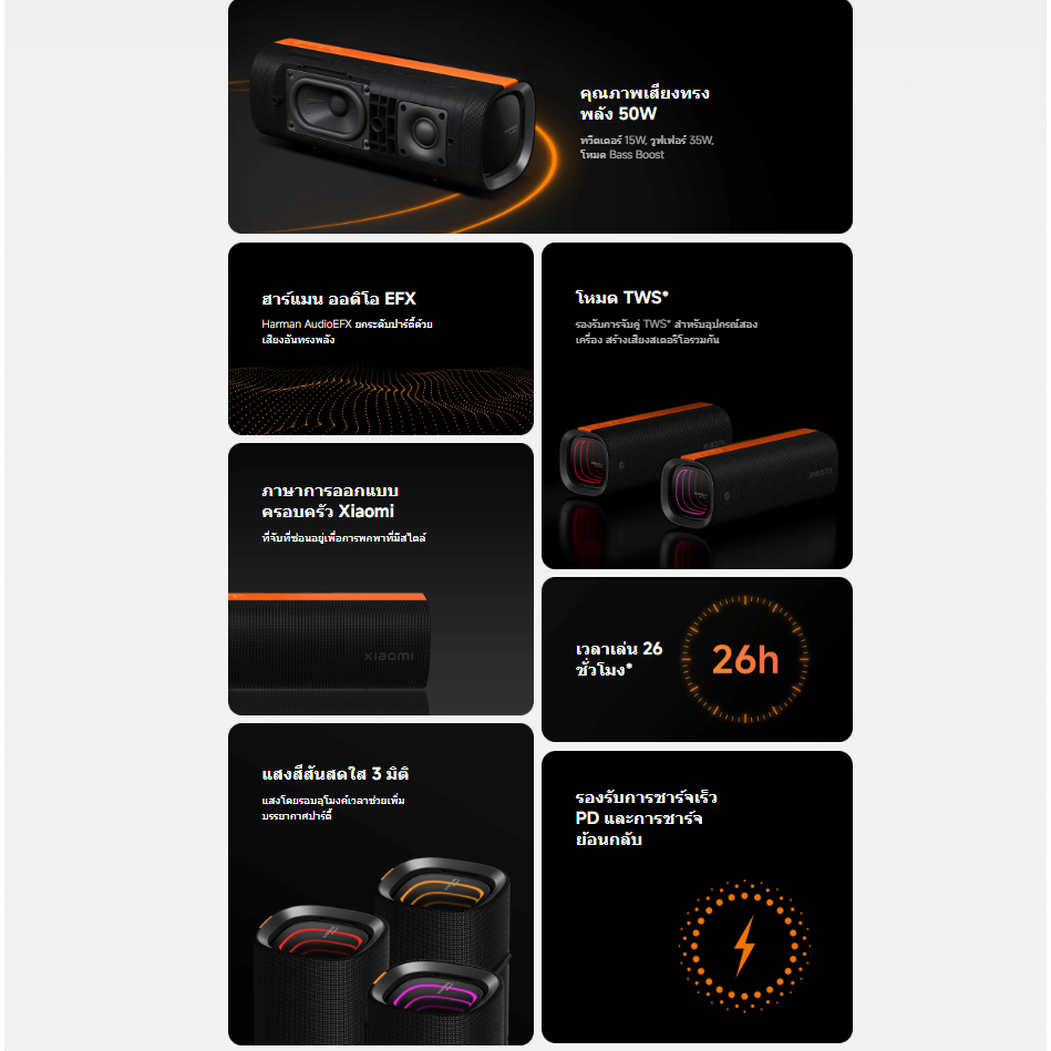 (NEW) Xiaomi Sound Party ลําโพง Bluetooth I กำลังไฟ 50W I Harman AudioEFX การปรับแต่ง I เอฟเฟกต์แสง3มิติ I ลำโพงบลูทูธ