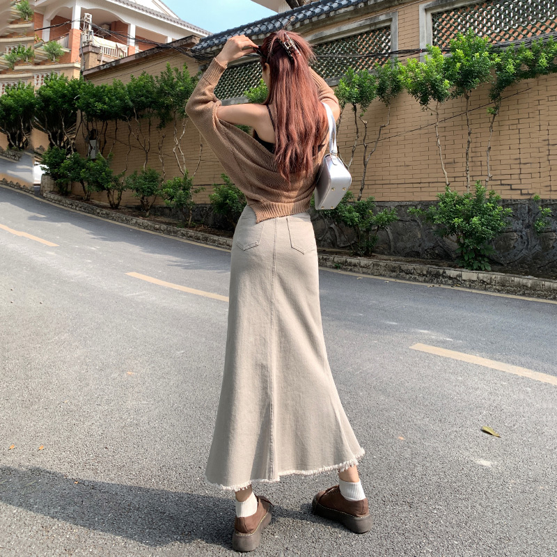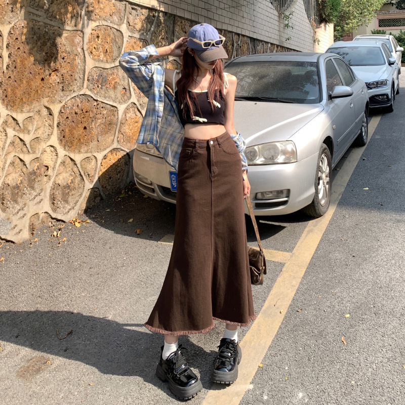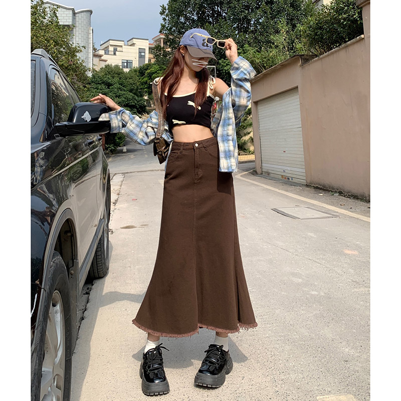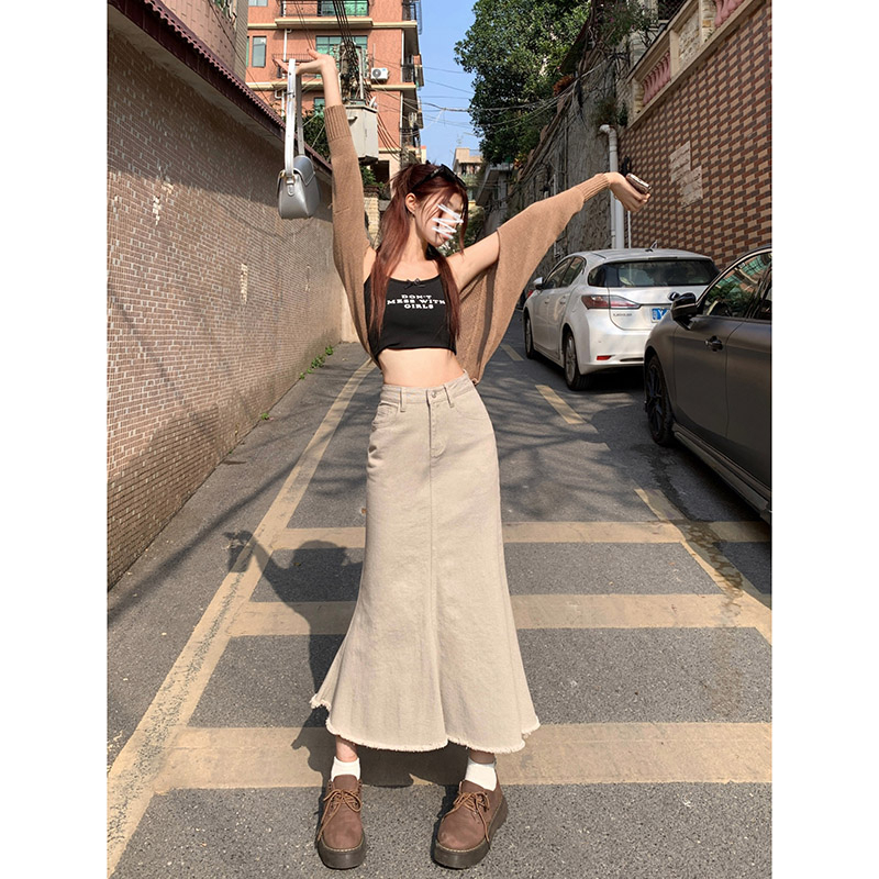 ฤดูใบไม้ผลิใหม่คาวบอย หางปลา กระโปรงผู้หญิง ก-เส้น บางครอบคลุมเป้าและห่อสะโพกกระโปรงครึ่งตัว