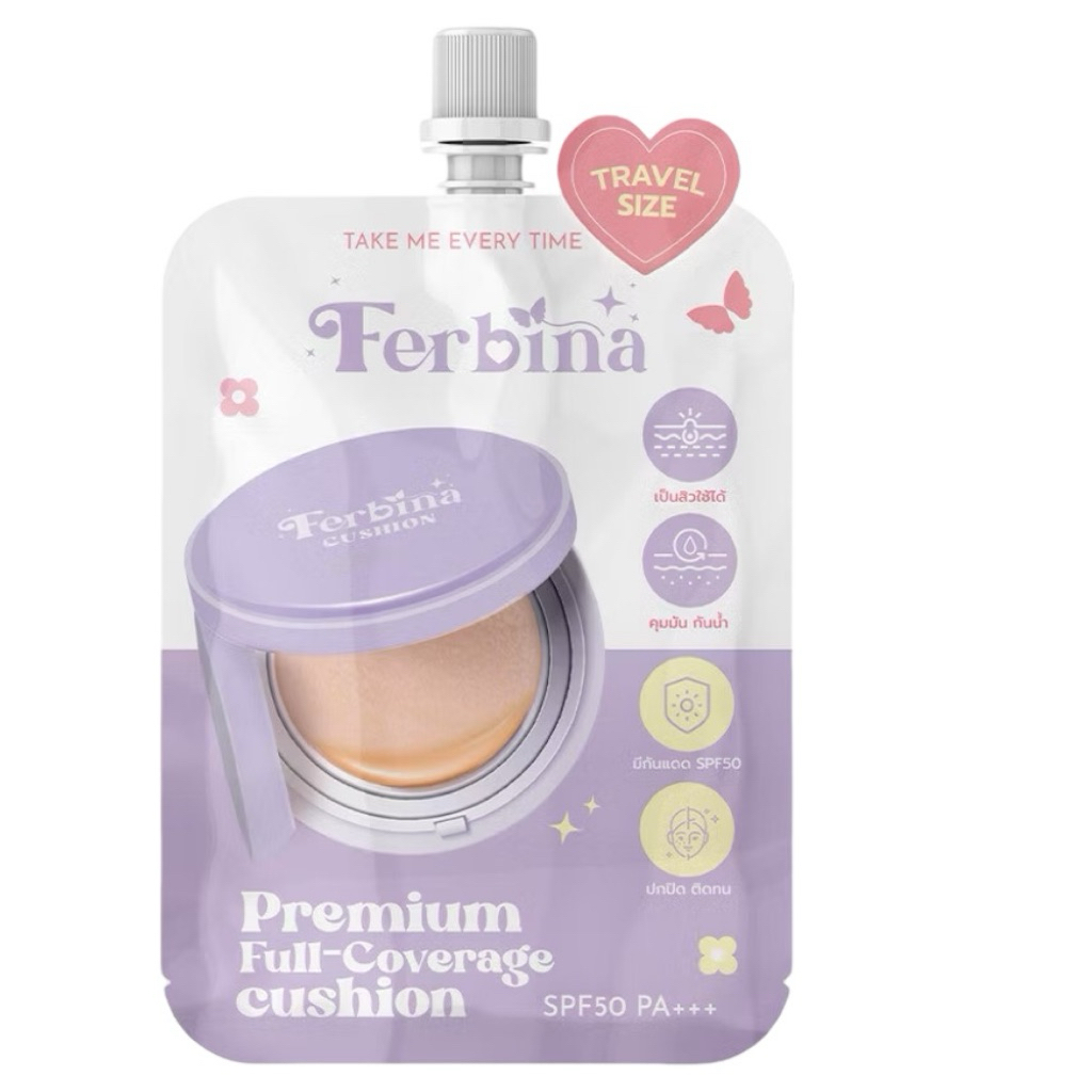 ส่งฟรี/มีไลฟ์ (ซอง)FERBINA Cushion Travel Size 5g เฟอบีน่า คุชชั่นแบบซอง (Premium/Full-Coverage)