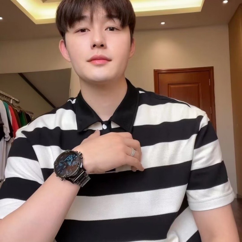 เสื้อโปโลทรงหลวมลายทางสไตล์เกาหลีสําหรับผู้ชาย - เสื้อลําลองแขนสั้นระบายอากาศ
