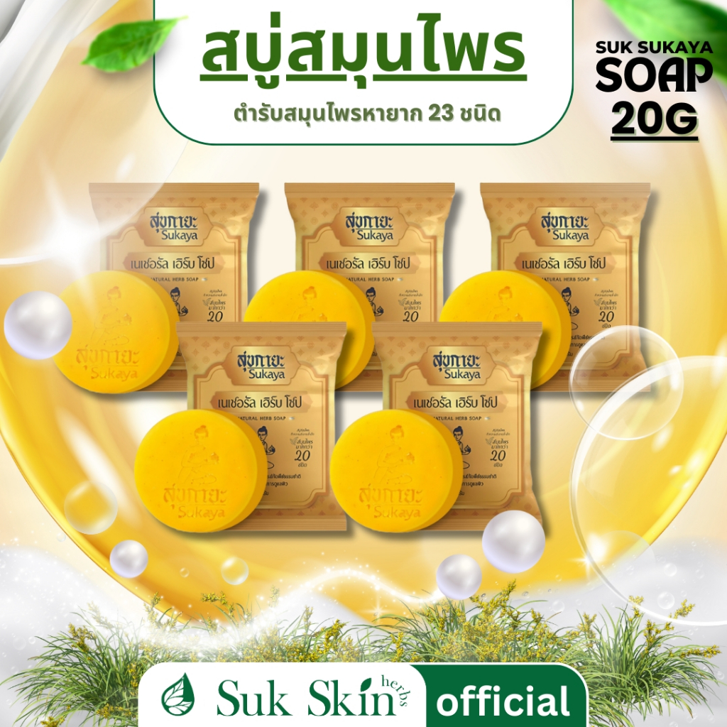 Sukaya สบู่สมุนไพรสุขกายะ สูตรเย็น ระงับกลิ่นกาย กลิ่นหอมสดชื่น 20g.