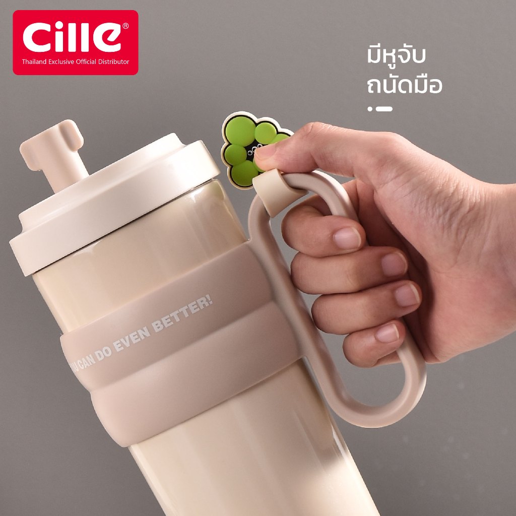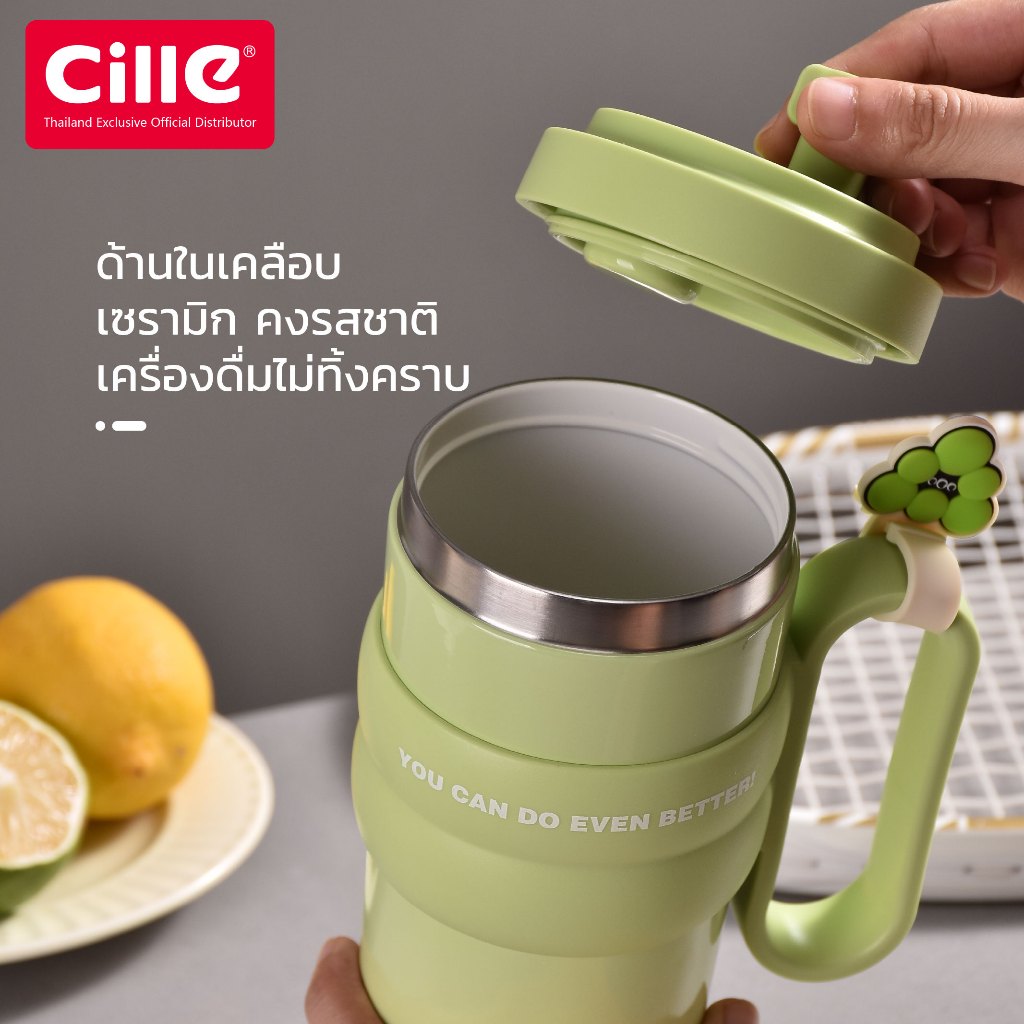 [รับประกัน 1ปี] Cille Cozy Ceramic Mug แก้วสแตนเลส304 เคลือบเซรามิก เก็บร้อน-เย็น มีหูจับ Vacuum Bottle 750ml รุ่น 24193
