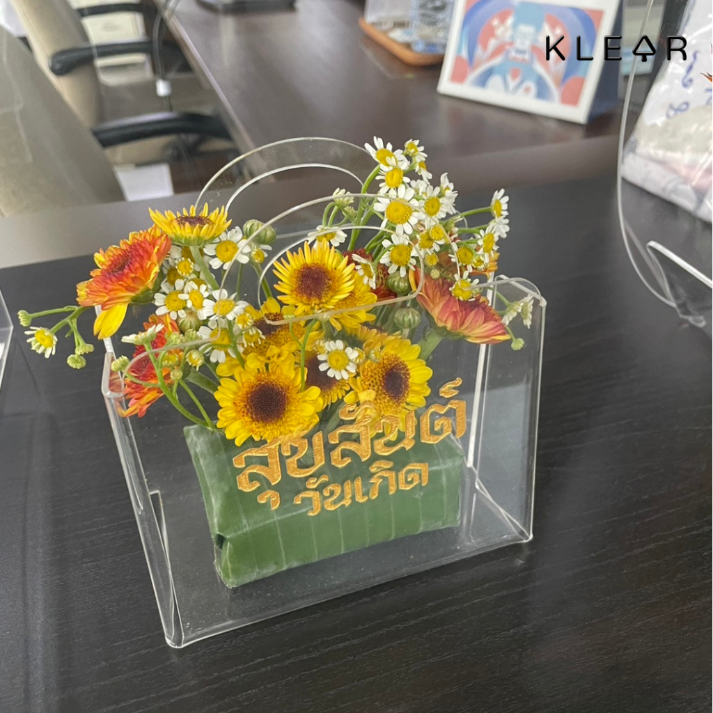 กระเป๋าอะคริลิคใส พิมพ์ข้อความได้ กระเป๋าจัดดอกไม้ กระเป๋าใส่ของวันสำคัญ กระเป๋าจัดเก็บสิ่งของ
