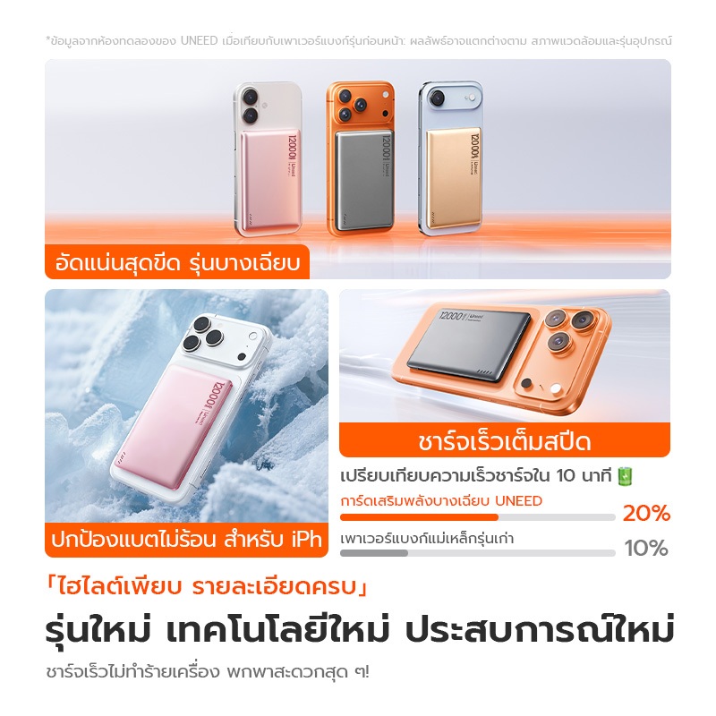 [Qi2+CCC] UNEED Powerbank เล็กที่สุด แบตสํารอง Magnetic 12000mAh Mini พาวเวอร์แบงไร้สาย พาวเวอร์แบงค์