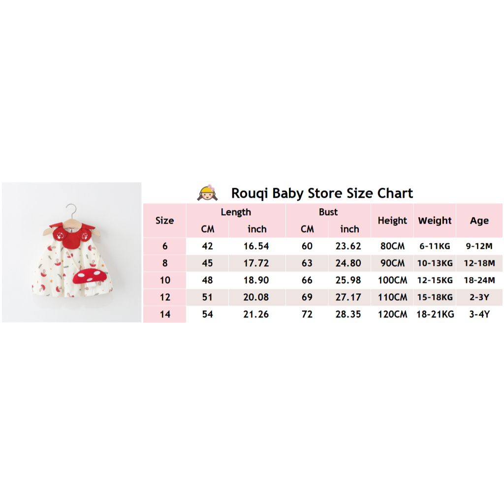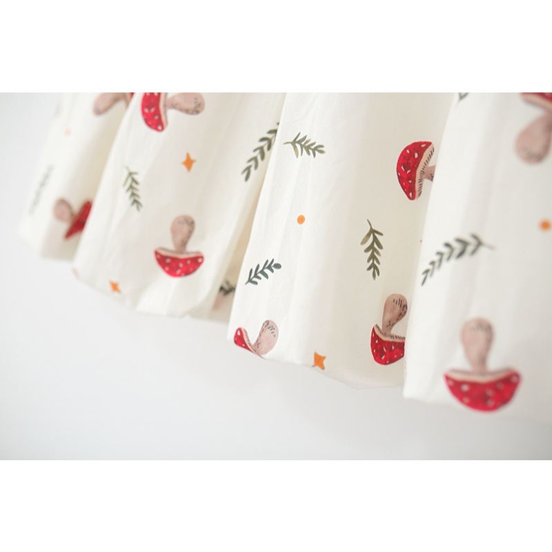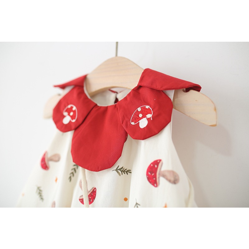ชุดเด็กผู้หญิงฤดูร้อนใหม่การ์ตูนเห็ดเด็กดอกไม้หน่อกระโปรงกลีบปกเด็กสวมใส่กลางแจ้งเหมาะสําหรับ 0-4 ปีให้ถุงเห็ดเช่นของขวัญ