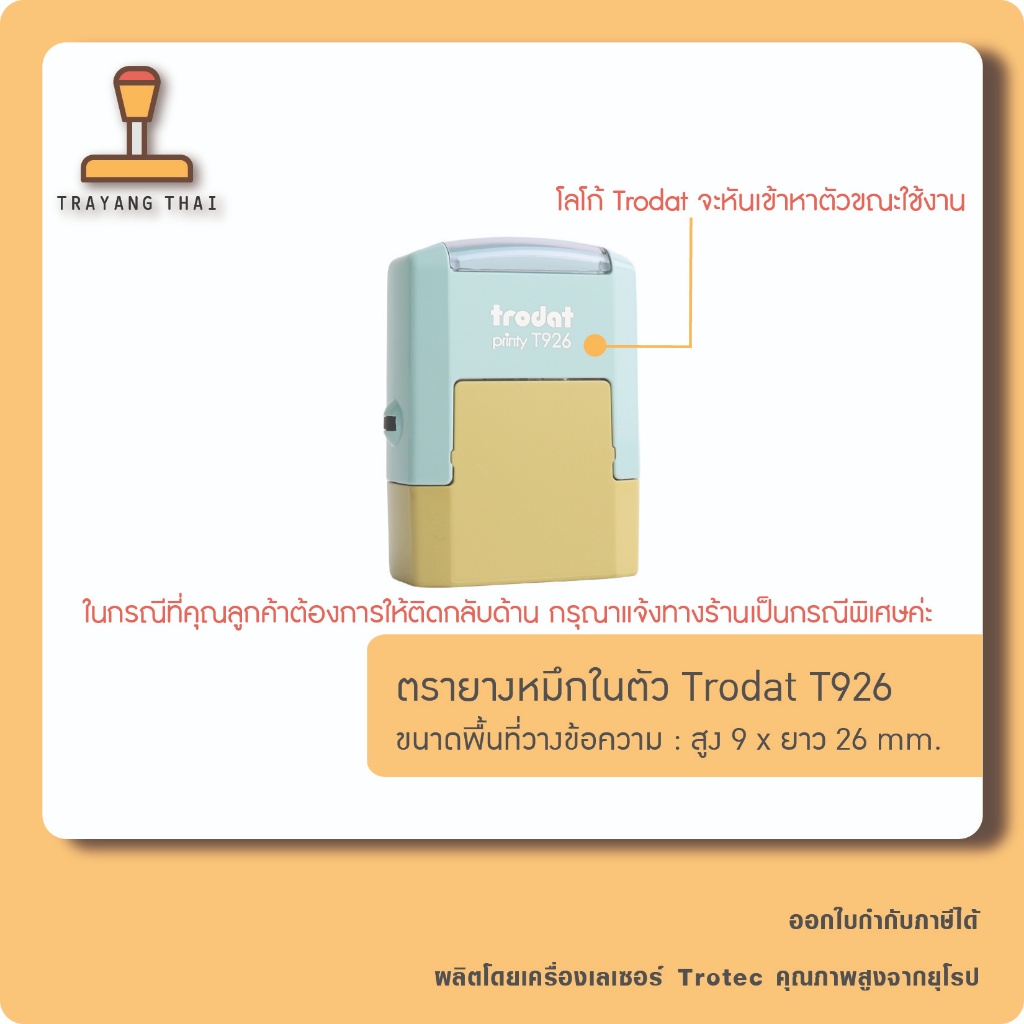 ตรายางหมึกในตัวพร้อมฝาปิด แบรนด์ Trodat รุ่น T926 (ขนาด 9 x 26 mm.)