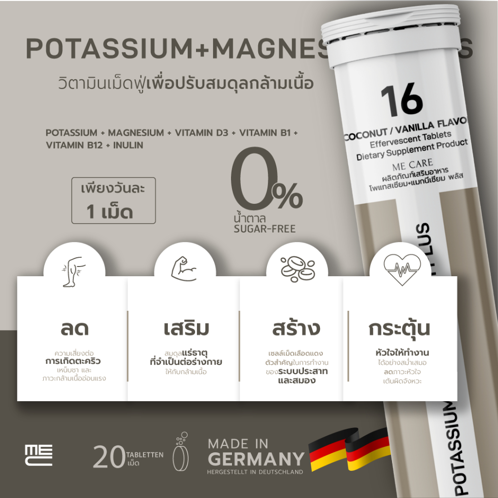 ME CARE Potassium + Magnesium Plus วิตามินเม็ดฟู่ 6 หลอด กลิ่นมะพร้าวและวนิลา