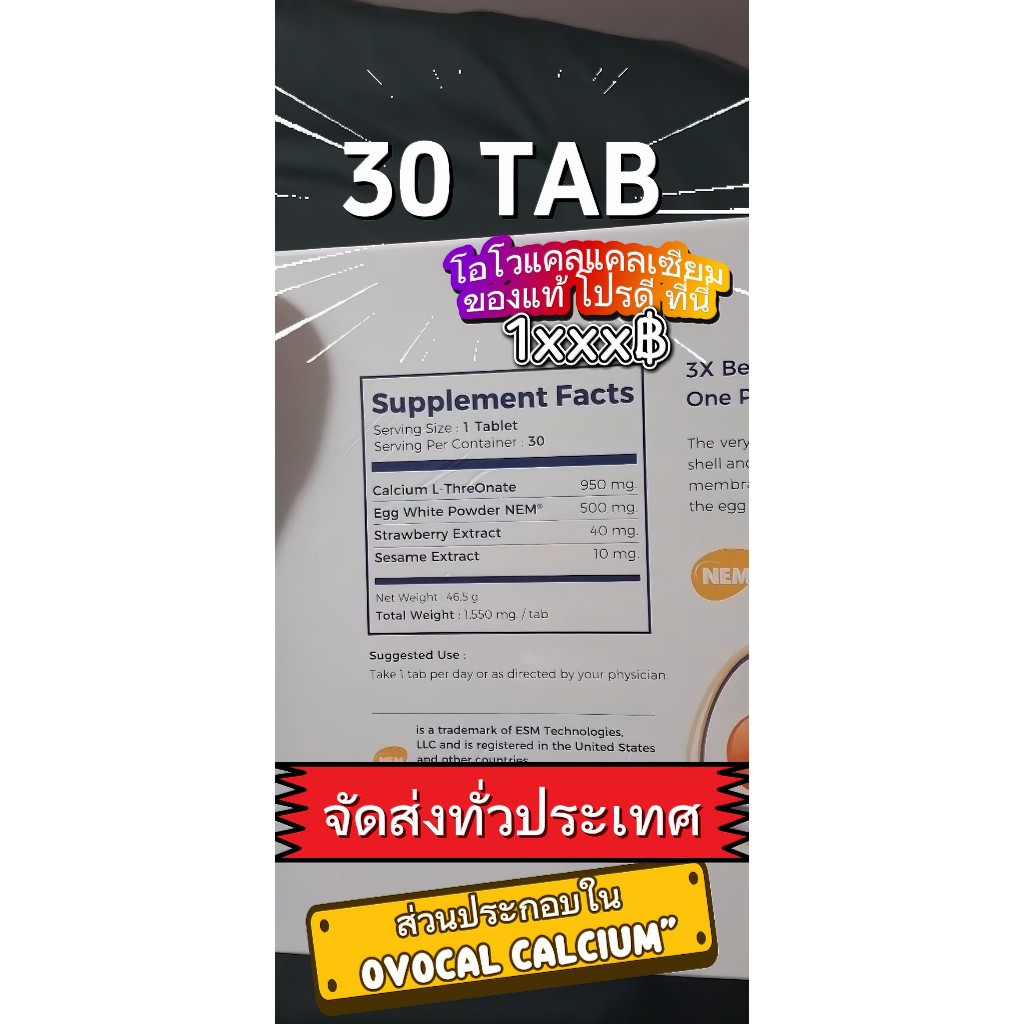 OVOCAL CALCIUM L-THREONATE 30 TABS / โอโวแคล แคลเซียม ขนาด 30 เม็ด