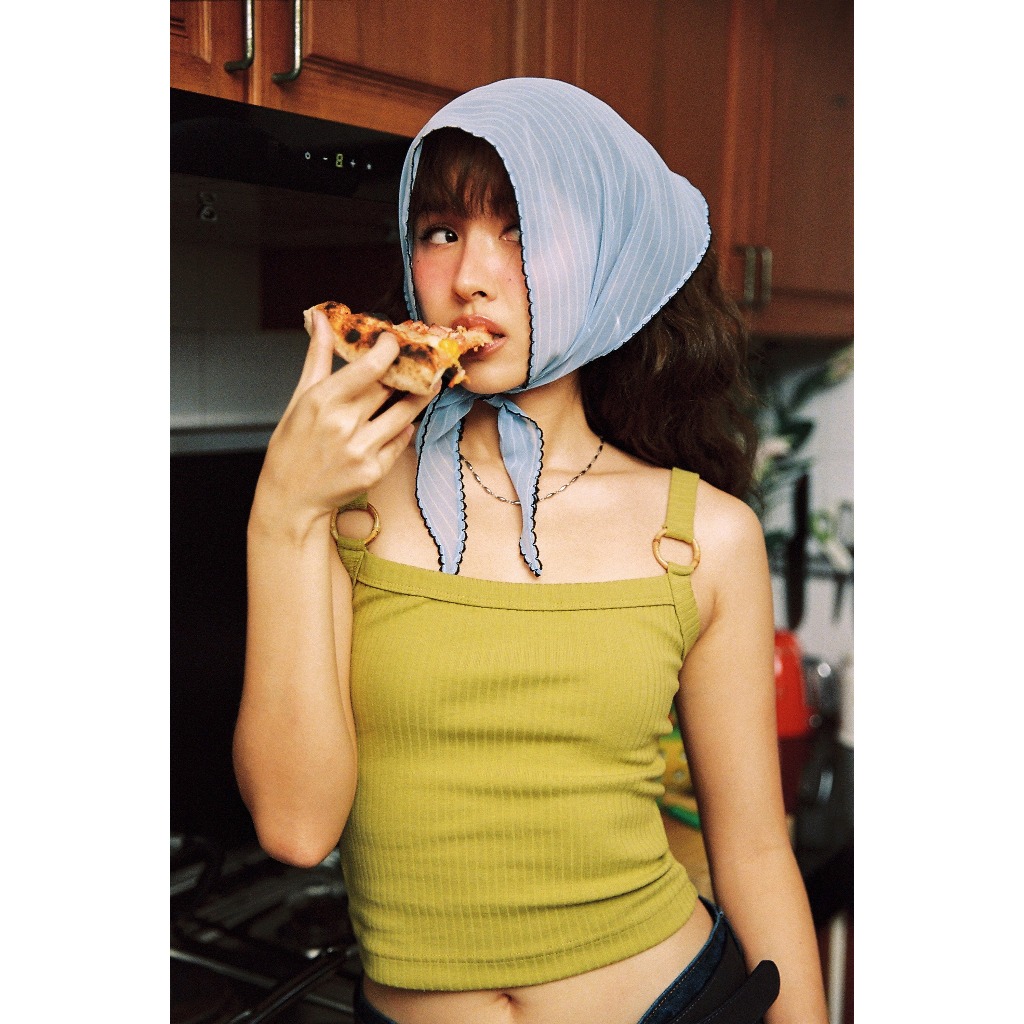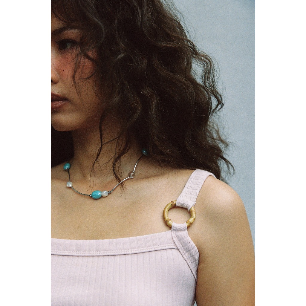 KANDA JEANS : Bamboo Ring Rib Top เสื้อสายเดี่ยว ตกแต่งห่วงไม้ไผ่