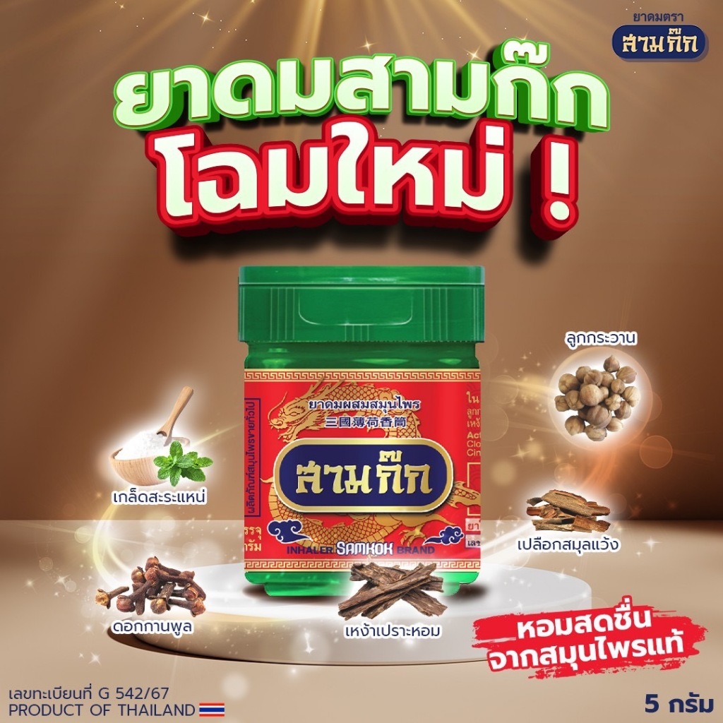 ยาดมกระปุก ตราสามก๊ก 6 กระปุก กลิ่นสมุนไพรแท้ หอมสดชื่นในพริบตา พกง่ายใช้คล่อง