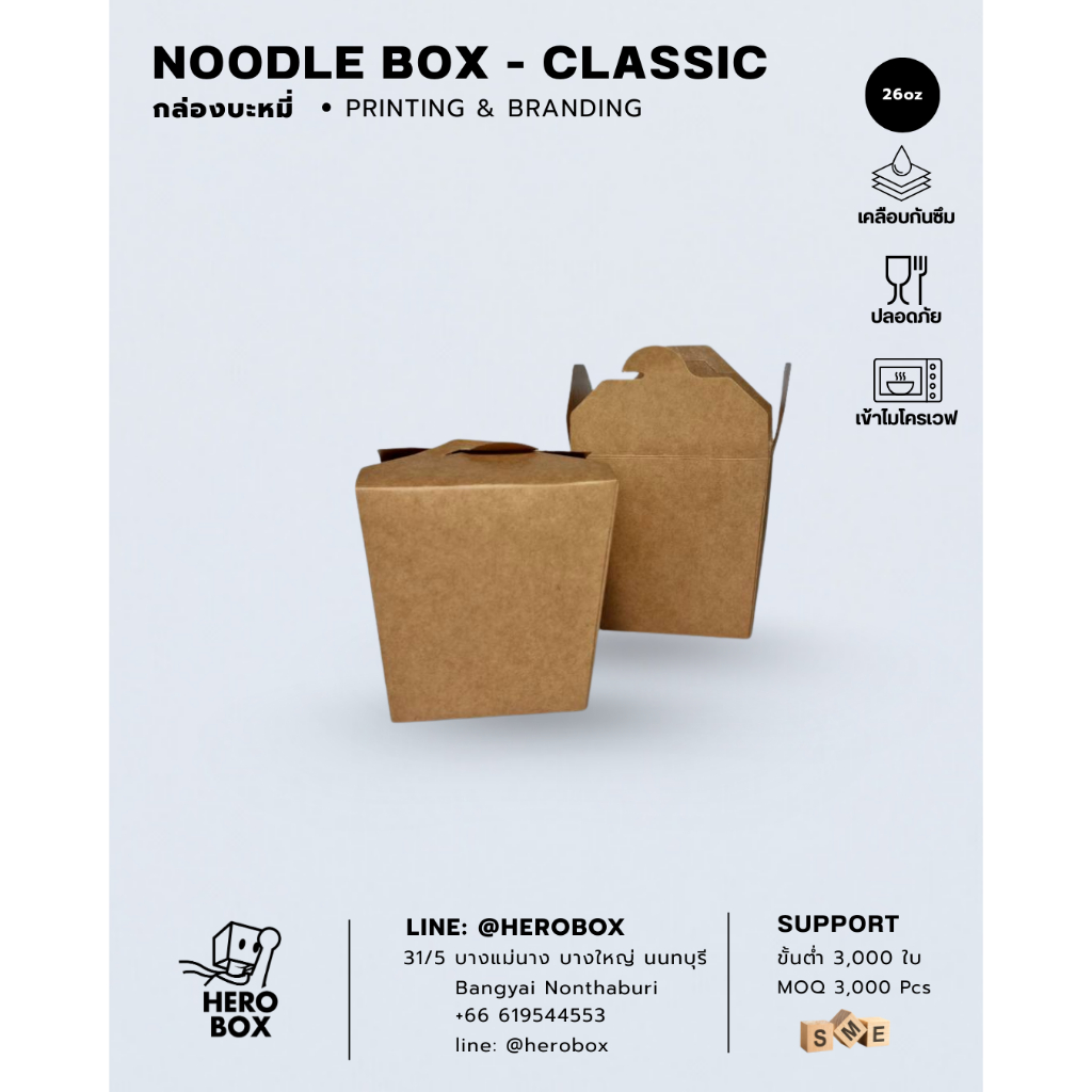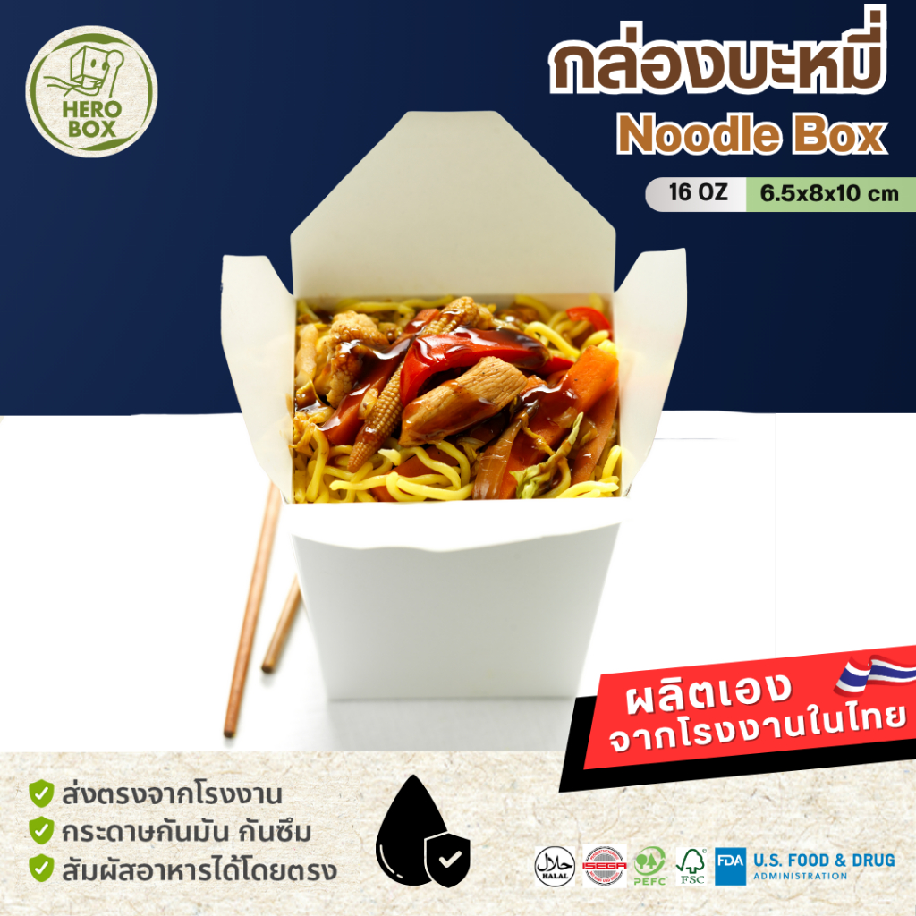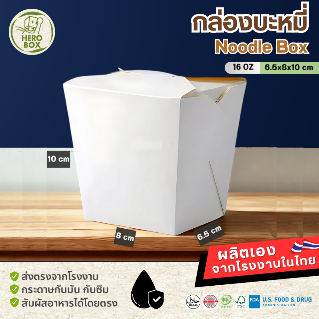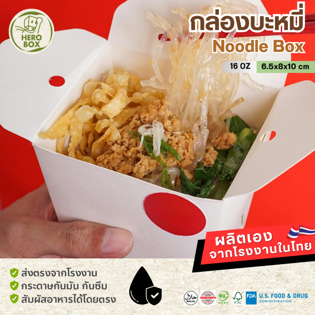 【HeroBox】50ใบ กล่องบะหมี่ กล่องหมี่ไก่ฉีก กล่องอาหาร สีขาว คราฟท์ เคลือบ PE กันซึม Noodle box