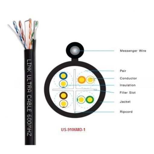 LINK US-9106MD-1 มีลวดสลิง CAT6 UTP Cable (100m/Box) Outdoor 23 AWG w/Drop (สีดำ) ส่งด่วนรับสินค้าภายใน 6 ชั่วโมง
