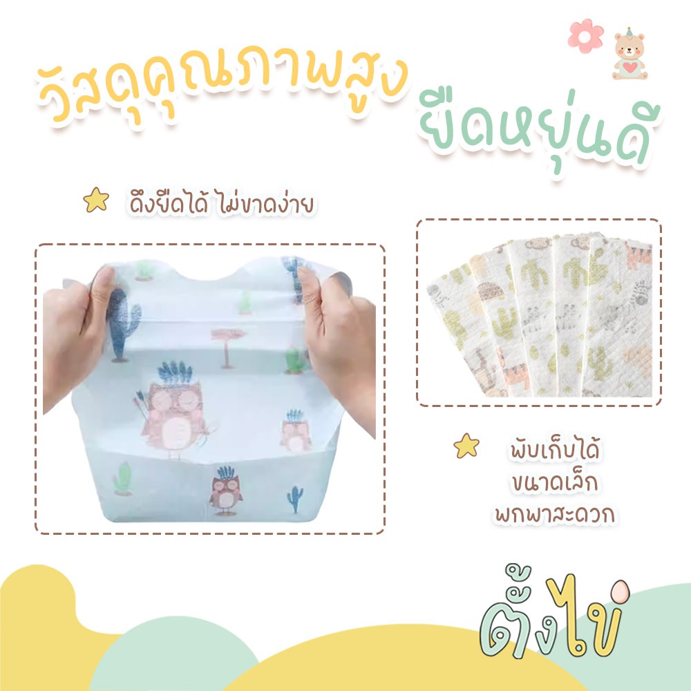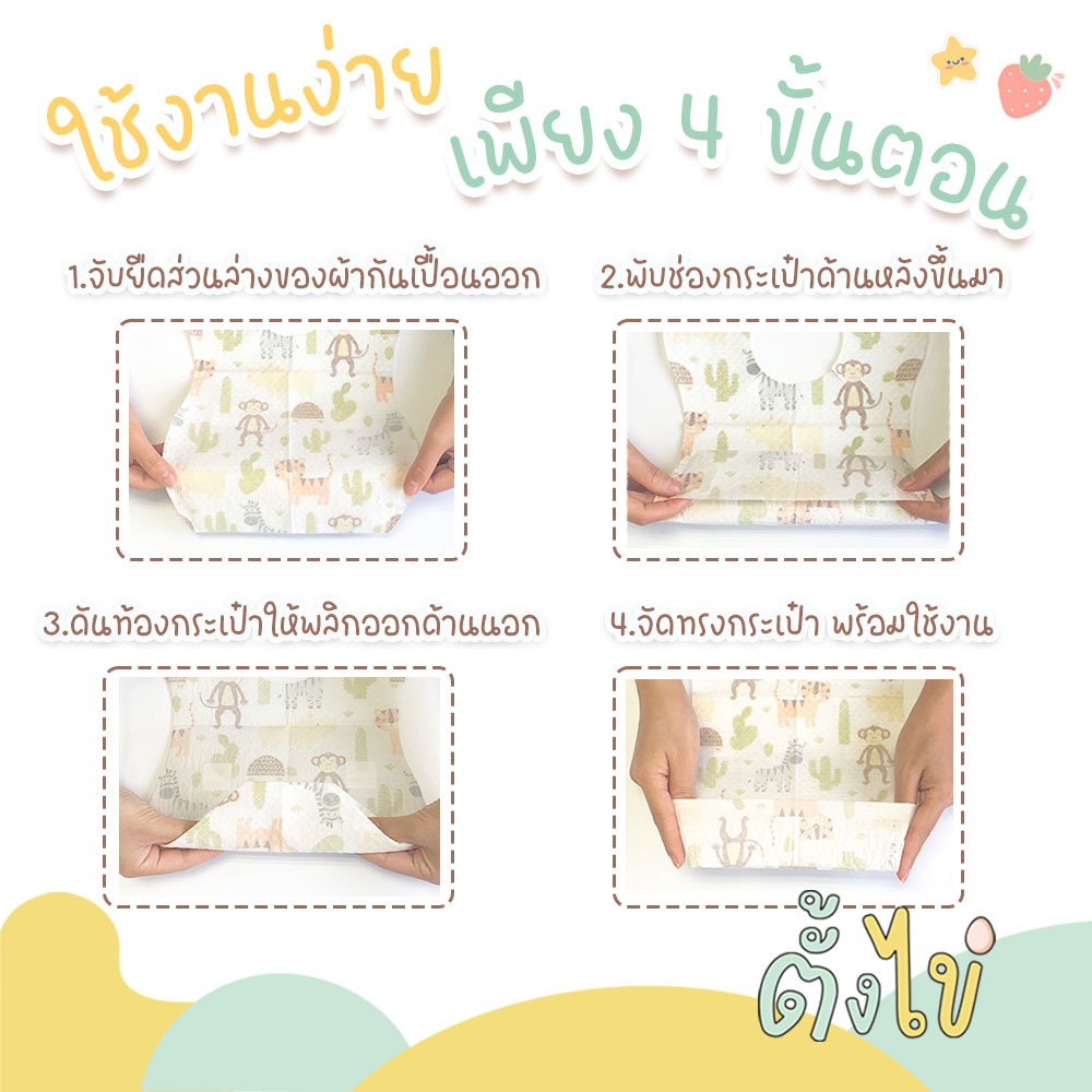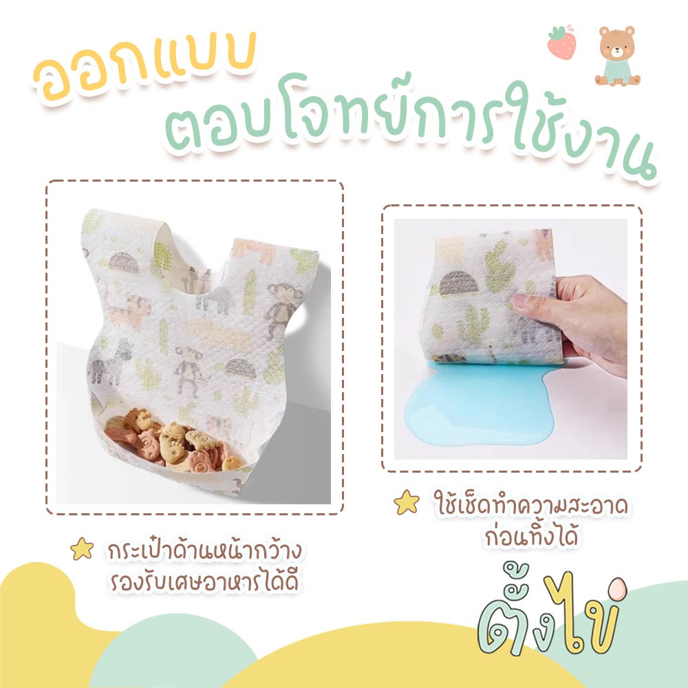 [ตั้งไข่] ผ้ากันเปื้อนเด็กใช้แล้วทิ้ง พร้อมช่องรองเศษอาหาร แบบพกพา ลายการ์ตูนน่ารัก สำหรับเด็กอายุ 6 เดือนขึ้นไป (ซอง10ช