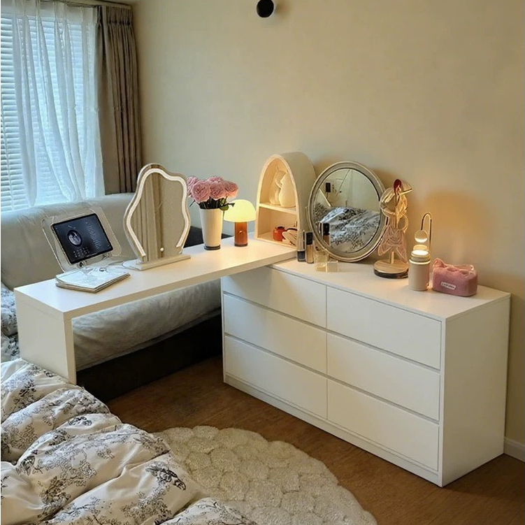 โต๊ะเครื่องแป้งสไตล์มินิมอล โต๊ะเสริมสวยมีลิ้นชัก ปรับความยาวได้ ตู้เก็บของอเนกประสงค์ ตกแต่งบ้าน