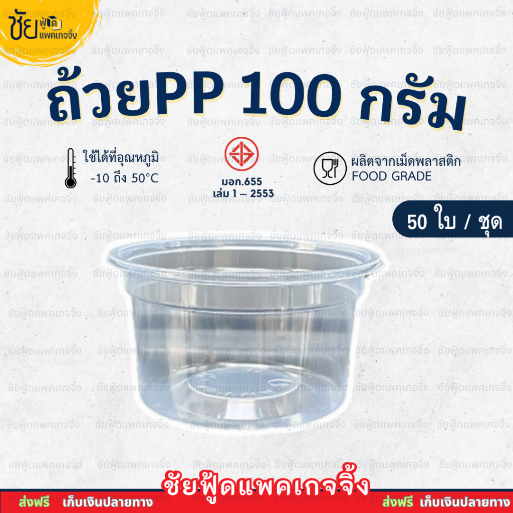 [50ชุด] SB ถ้วย 100 กรัม PP ปาก 95 มม. เหนียว ใส พร้อม ฝา โดม เรียบ ฮาฟ ไม่เจาะรู ถ้วยขนมหวาน 100g