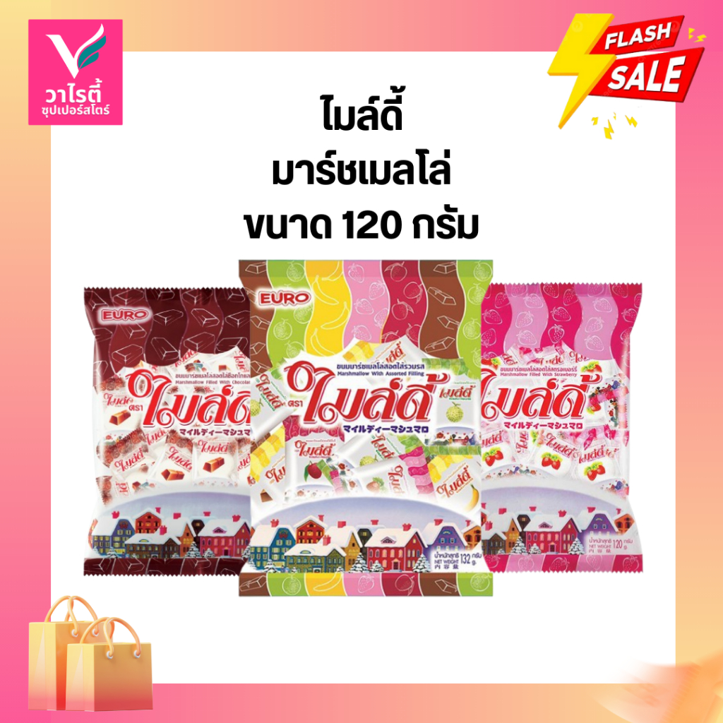 ไมล์ดี้ มาร์ชเมลโล่สอดไส้ ขนาด 120 กรัม ขนมวัยเด็ก