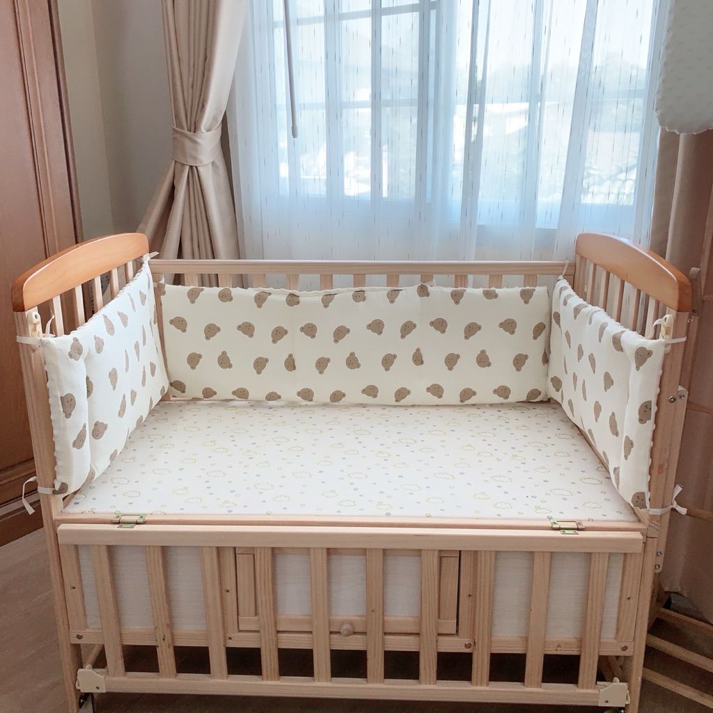 Upgrade ที่กั้นขอบเตียงใหญ่ ผ้ามัสลินย่น+ดอทมิ้งค์ กว้าง28xยาว120หนา4cm