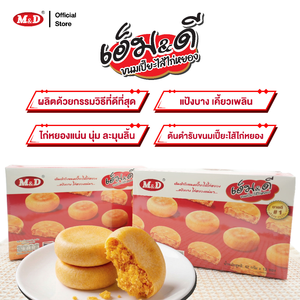 M&D ขนมเปี๊ยะไส้หมูหยอง 12ชิ้น/กล่อง ต้นตำรับขนมเปี๊ยะ แป้งบาง ไส้แน่นทุกคำ