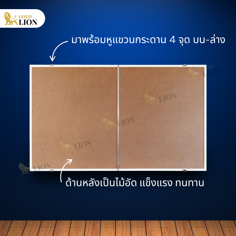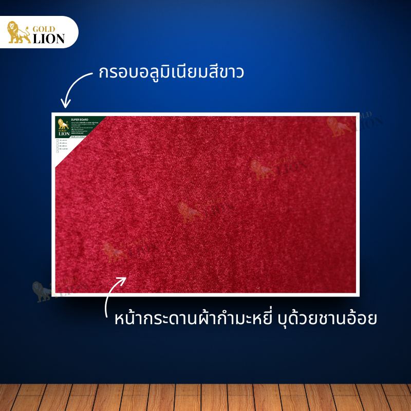 กระดานกำมะหยี่ Gold Lion ขนาดใหญ่ แบบแขวน กรอบอลูมิเนียมสีขาว
