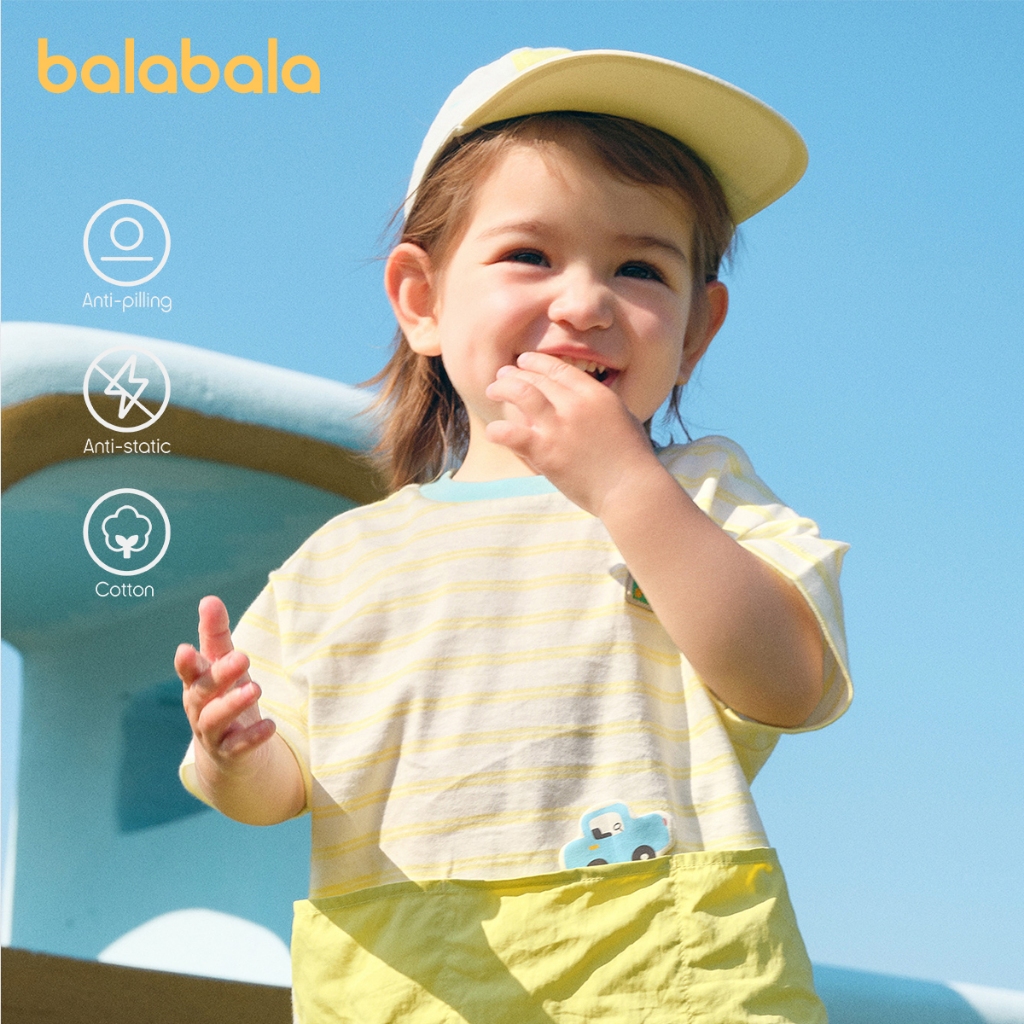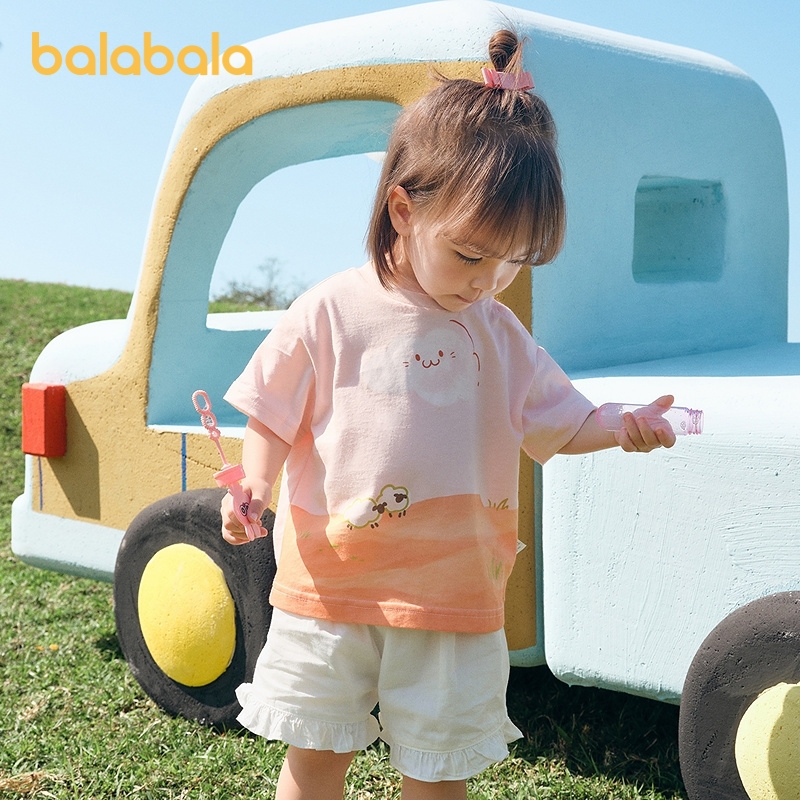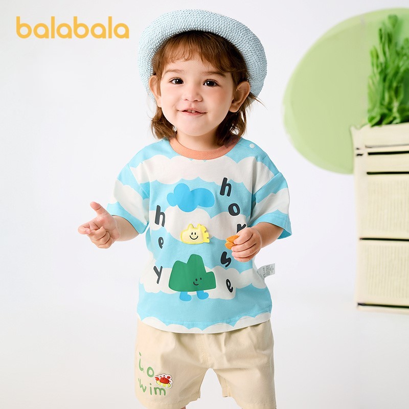 บาลาบาลาบอยแขนสั้นเสื้อยืดเด็กด้านบนสาวเสื้อผ้า2025 แฟชั่นฤดูร้อนใหม่น่ารักทารกด้านบนน่ารักแฟชั่นสบายๆระบายอากาศสบายผ้าฝ้ายนุ่มสวมใส่ทุกวัน