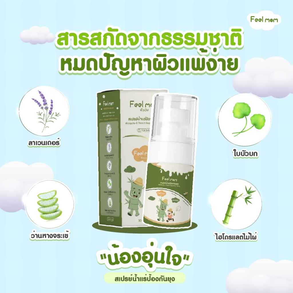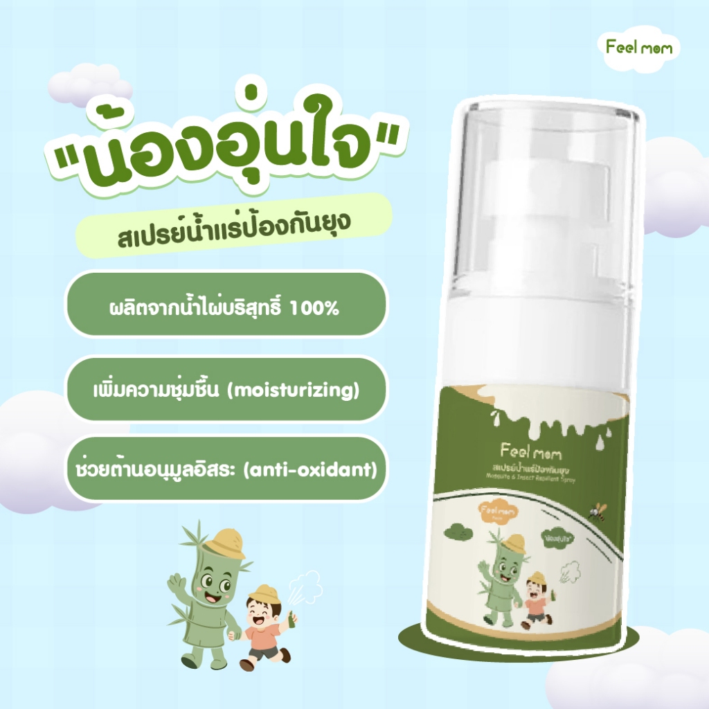 Feel Mom สเปรย์กันยุงและแมลงสำหรับเด็ก สูตรน้ำแร่บริสุทธิ์จากไผ่ บริเวณภูเขาฮักโกดะ จังหวัดโอมิริ ประเทศญี่ปุ่น (ฟีลมัม)